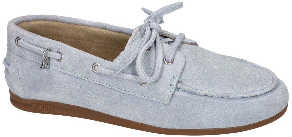 Deze bootschoenen uit de nieuwste lente/zomercollectie van Maruti combineren een tijdloos nautisch design en kust fashion design met modern draagcomfort. Model Eliza met artikelnummer 66.1883.01-S17 is uitgevoerd in Suède Light Blue en straalt een frisse, zomerse elegantie uit. Het ontwerp van deze loafers is trouw aan het klassieke bootschoenenconcept, met de kenmerkende belijning, de lederen koordjes rond de boord van de schoen en de strik en de fijne stiknaden langs de neus. De uitvoering in zacht hemelsblauw suède geeft deze schoen een lichte, luchtige uitstraling die perfect past bij het lente- en zomerseizoen. Binnenin is de schoen afgewerkt met een kussenzacht, met leder bekleed voetbed, wat zorgt voor aangenaam comfort bij dagelijks gebruik. De soepele rubberen loopzool biedt voldoende grip en flexibiliteit, ideaal voor zowel stadsgebruik als ontspannende wandelmomenten. Deze Maruti Eliza bootschoen is bijzonder veelzijdig te combineren. Draag hem casual met een linnen broek, chino of jeans, of combineer hem stijlvol met een zomerse jurk of rok voor een nonchalante maar verzorgde look. Perfect voor vakanties, citytrips, terrasjes, strandwandelingen of casual werkdagen waarbij comfort en stijl hand in hand gaan. Een frisse, elegante bootschoen die moeiteloos past in een moderne zomergarderobe. De Eliza loafers in blauw geven je schoenencollectie een ultieme casual chique uitstraling. Deze instapschoen is gemaakt van een zachte suède-look stof. De speelse veters en het subtiele Maruti-logo geven de schoen een unieke twist. Dankzij de flexibele zool en het zachte voetbed ziet de Eliza er niet alleen stijlvol uit, maar biedt hij ook comfort de hele dag door. Combineer deze blikvanger met een comfortabele jeans of een zomerjurk voor een moeiteloos modieuze look. De perfecte balans tussen comfort en stijl! Maruti bootschoenen en loafers vindt men in onze schoenenwinkel regio Aalst, Ninove, Geraardsbergen, Zottegem, Liedekerke of kan men online bestellen op onze webshop.