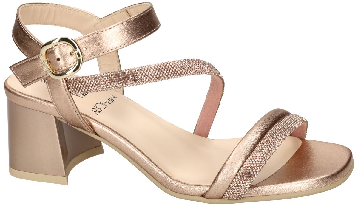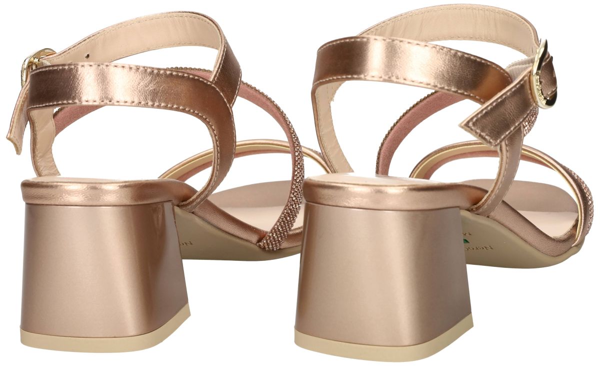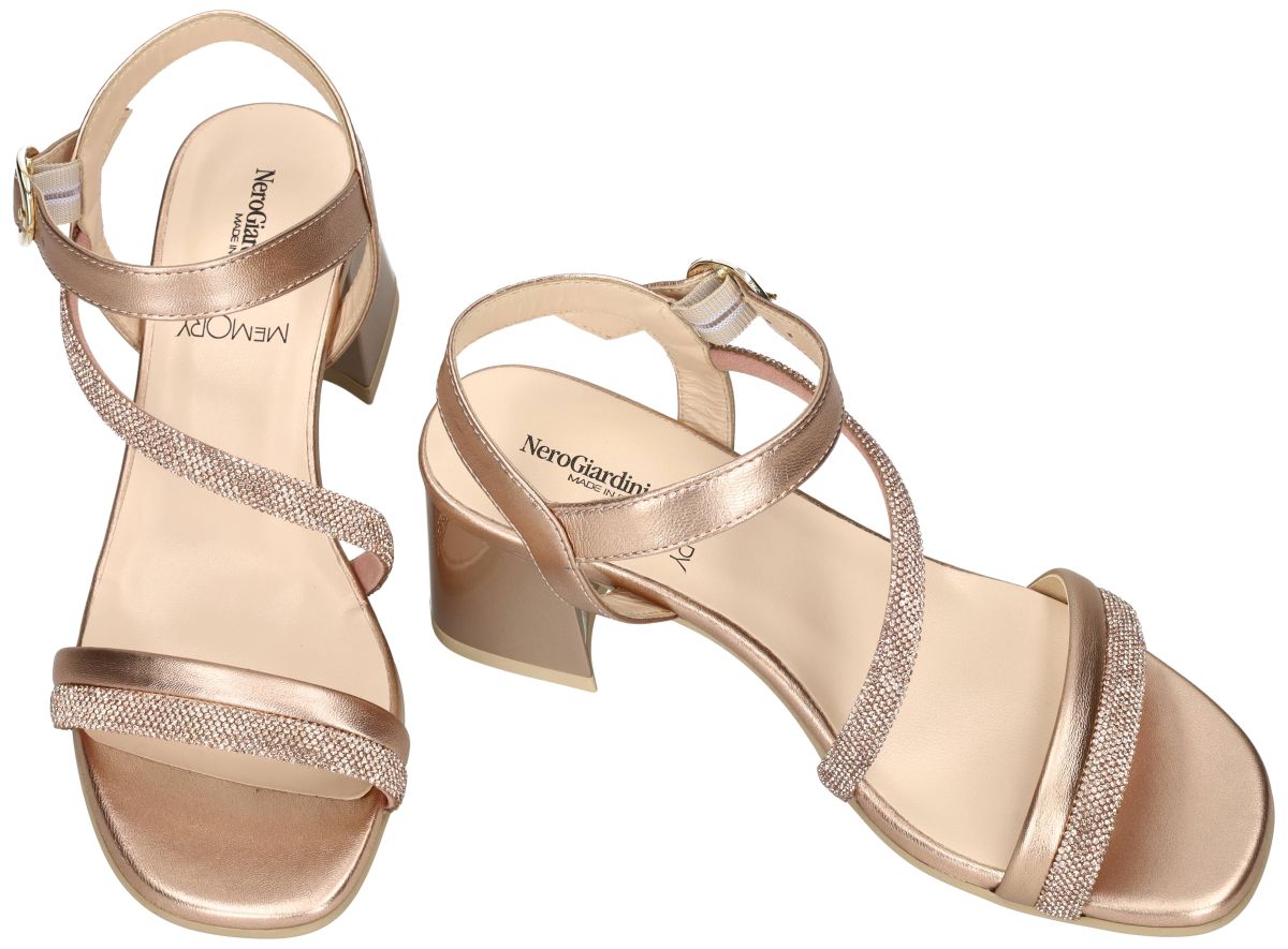 Ontdek de elegante dames sandalen van het Italiaanse schoenenmerk NeroGiardini, model E615721D in de verfijnde uitvoering Nettuno Phard Fen Naturale. Deze stijlvolle sandalen combineren een luxueuze rosé metallic lederen upper met een subtiel glanzende afwerking. De fijne bandjes, waarvan één bezet is met fonkelende strass steentjes, zorgen voor een vrouwelijke en feestelijke uitstraling. D e verstelbare enkelband met goudkleurige gesp biedt een perfecte pasvorm en extra stabiliteit. Binnenin zorgt de zachte lederen voering en het comfortabel voetbed voor een aangenaam draaggevoel, ook bij langdurig gebruik. De stevige blokhak van 5 cm geeft een elegante lift zonder in te boeten op comfort. Ideaal voor zomerse gelegenheden, feestjes of een stijlvolle avondlook. Met deze NeroGiardini sandalen kies je voor Italiaanse klasse, kwaliteit en tijdloze elegantie. Nero Giardini sandalen vindt men in onze schoenenwinkel regio Aalst, Ninove, Geraardsbergen, Zottegem, Liedekerke of kan men online bestellen op onze webshop.