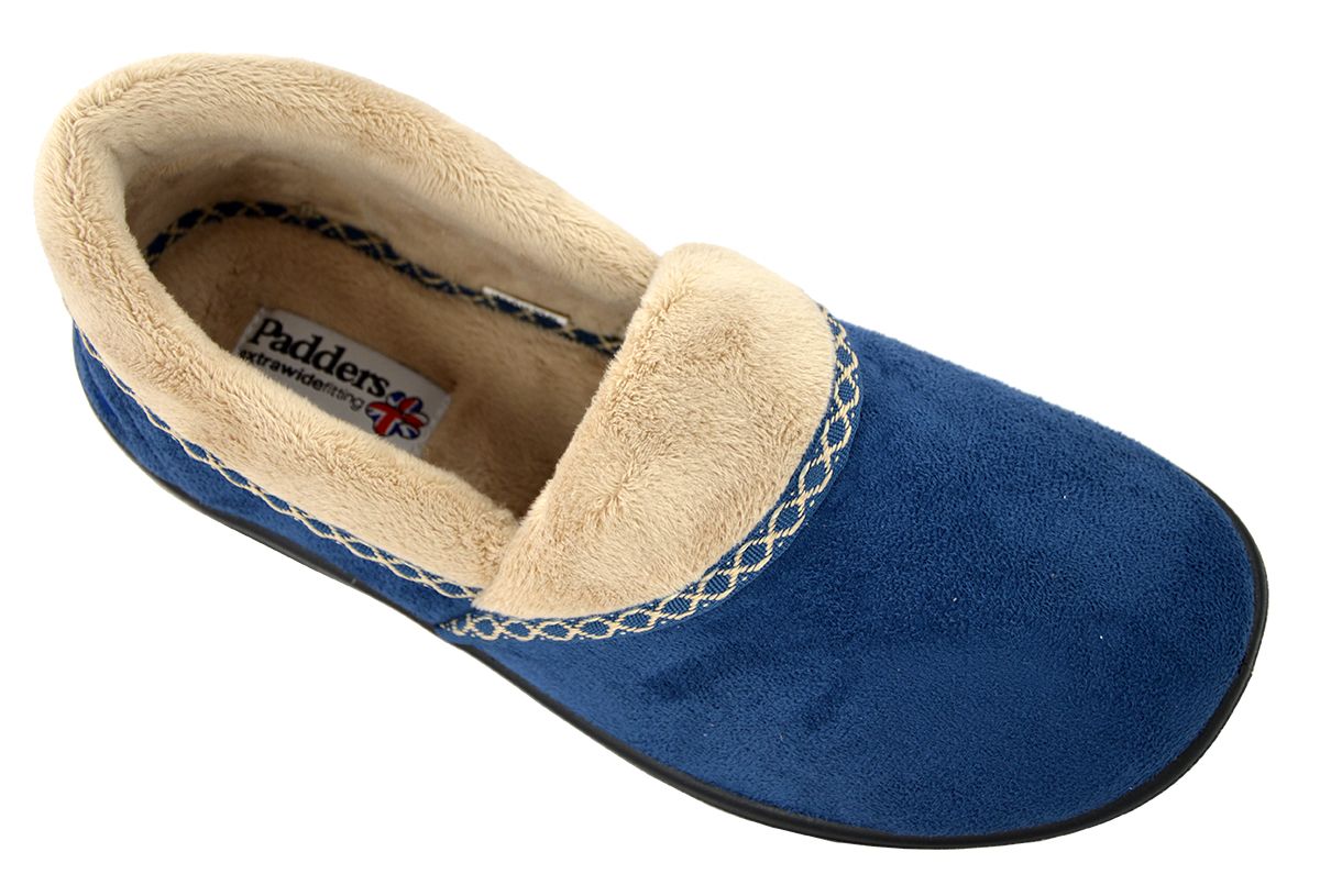 Het model Mellow denim blue is een blauwe super comfort warme damesschoenen gesloten pantoffel van Padders feelgoodfeed.Deze Padders Mellow damespantoffel is extra breed met zijn EE wijdte leest en heeft binnenin een memory foam zoolen gevoerd met katoen. De Camilla Padders pantoffel is door zijn diepe snit makkelijk aan te passen.De rubber antislip loopzool is met vanile extract geparfumeerd. Padders pantoffels zijn wasbaar op 30° en uitermate geschiktvoor revaliderende patienten, bejaarden met gezwollen voeten. U kan Padders pantoffels kopen in onze schoenenwinkel te Denderhoutem of online bestellen op onze webshop.