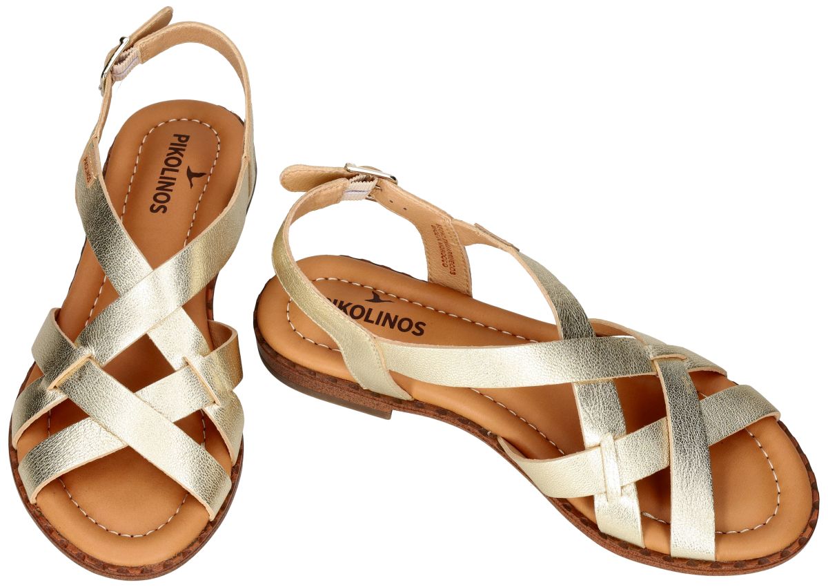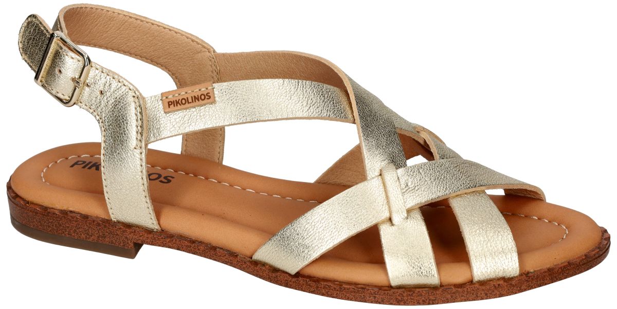 Deze platte sandalen van het Spaanse schoenenmerk PIKOLINOS, model Algar WOX-0556CL in de uitvoering Carrara, combineren elegantie met dagelijks comfort. Het bovenwerk in soepel, chroomvrij gelooid leder wordt ecologisch verantwoord geproduceerd en voelt bijzonder zacht aan. De verfijnde bandjes in glanzend goud metallic kruisen speels over de wreef en zorgen voor een vrouwelijke, zomerse look. Het malse kussen voetbed biedt aangename demping en ondersteunt de voet bij elke stap. De verstelbare hielriem met gesp zorgt voor een stabiele en persoonlijke pasvorm. Dankzij de lage, flexibele zool geniet u van een natuurlijke afrol en licht draagcomfort. Een stijlvolle en duurzame sandaal die perfect past bij warme dagen en moeiteloos te combineren is met elke zomerse outfit. PIKOLINOS schoenen en sandalen kan men kopen in onze schoenenwinkel regio Aalst, Ninove, Geraardsbergen, Zottegem, Liedekerke of kan men online bestellen op onze webshop.