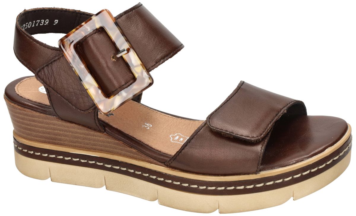 Remonte Dames Sleehak Sandalen D2L53-25 Lugano moro braun zijn elegantie en comfort sandalen voor de zomer. Deze Remonte D2L53-25 sandalen zijn de perfecte keuze voor dames die op zoek zijn naar een stijlvolle en comfortabele aanvulling op hun zomergarderobe. Met een elegant kastanjebruin design en hoogwaardige materialen bieden deze sandalen zowel modieuze flair als draagcomfort. Het bovenwerk van deze Remonte D2L53 sandalen is vervaardigd van soepel donkerbruin leer, wat zorgt voor een luxe uitstraling en duurzaamheid. De brede klittenbanden over de wreef en het smalle hielbandje bieden niet alleen een gemakkelijke instap, maar ook een optimale pasvorm. Met een sleehak van 30 mm bovenop een doorlopende 3 cm dikke plateauzool bieden deze sandalen een subtiele verhoging die bijdraagt aan een elegante look zonder in te boeten op comfort. De lichte plateauzool zorgt voor demping zorgt voor een aangenaam draaggevoel, ideaal voor dagelijks gebruik tijdens de warmere maanden. Deze kastanje bruine sleehak sandalen zijn veelzijdig en kunnen gemakkelijk worden gecombineerd met diverse outfits, van casual jeans tot zomerse jurken. Ze zijn ideaal voor zowel dagelijkse activiteiten als speciale gelegenheden, waarbij ze een perfecte balans bieden tussen stijl en comfort. Remonte schoenen en sandalen kan men kopen in onze schoenenwinkel regio Aalst, Ninove, Geraardsbergen, Zottegem, Liedekerke of online bestellen op onze webshop.