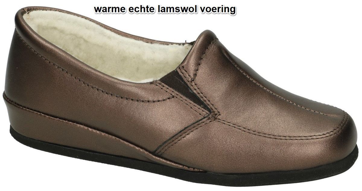 ROHDE artikel/model 6307-77 ODDA earth/terre zijn brons metallic leder met echte wol gevoerde damesschoenen gesloten pantoffels, sloffen instappers van het Duitse schoenenmerk en schoenenfabrikant ROHDE. Deze praktische en comfortabele ROHDE pantoffels hebben een F-wijdte leest voor normaal tot ietwat smallere voeten hebben een lichte sleehakhooge van 2,5 cm en sluiten mooi rondom de voet aan. De elastiek inkepingen zorgen voor een vlot aanpassen en uitstappen. Het bovenmateriaal van deze Rohde sloffen is van brons metallic kleur leder en de binnenvoering bestaat uit echte lamswol of schapen scheerwol. Ideale vrouwen heerlijk warme winterpantoffels of sloffen voor tijdens koude winterdagen. Rohde damespantoffels kan men kopen in onze schoenenwinkel regio Aalst, Ninove, Geraardsbergen, Liedekerke, Zottegem of online bestellen op onze webshop.