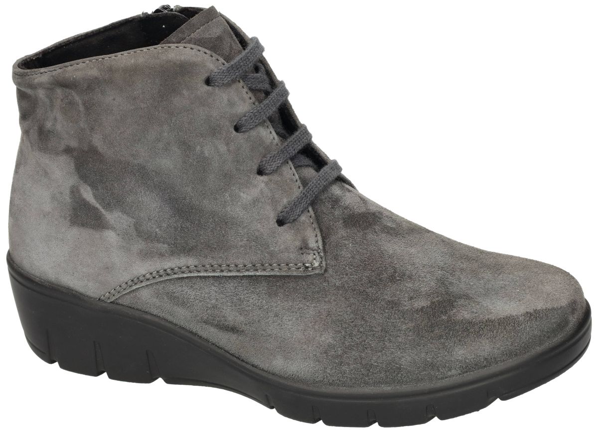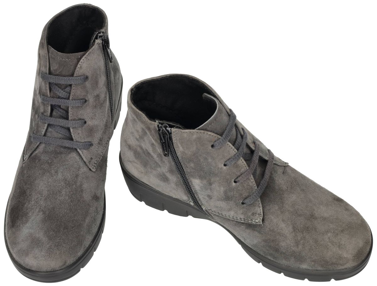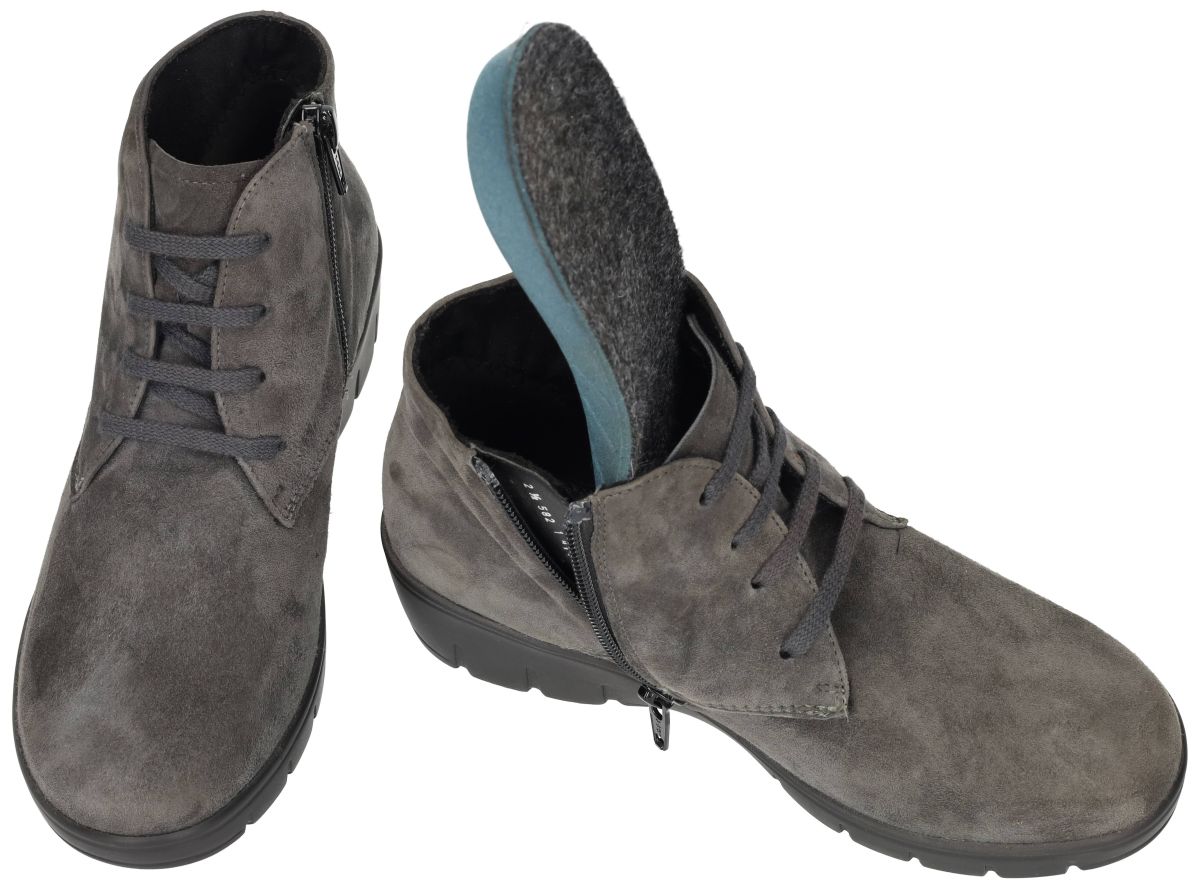 Semler dames boots J76153 – laatste paar maat 35 aan halve prijs! Deze Semler enkelboots met artikelnummer J76153 zijn een unieke kans voor wie een kleine maat draagt: het allerlaatste paar in maat 35 (UK 2½) én bovendien aan halve prijs! Een stijlvol, comfortabel en kwalitatief paar vinden in deze maat is zeldzaam – dus wees er snel bij. De uitvoering straalt pure elegantie uit: – Fijn grijs suède met een zachte, fluweelachtige uitstraling – Tijdloze look die met elke outfit combineert Zoals je van Semler mag verwachten, staat comfort centraal. De boots hebben een praktisch rits + veterdesign, waardoor je ze makkelijk aantrekt en perfect kunt aanpassen aan je voet. Binnenin geniet je van extra zachtheid dankzij het dik, uitneembaar voetbed – ideaal voor warmte en demping, maar ook perfect te vervangen door eigen steunzolen als je extra ondersteuning wenst. De lichte, buigzame zool zorgt voor soepele afrol en schokdemping, ideaal voor wie graag wandelt of lang staat. De schacht tot boven de enkel geeft extra stabiliteit én een slanke look. Een prachtige mix van stijlvolle eenvoud en dagelijks comfort – deze Semler J76153 boots zijn een topkoopje voor kleine maten. Op = op, dus aarzel niet te lang!