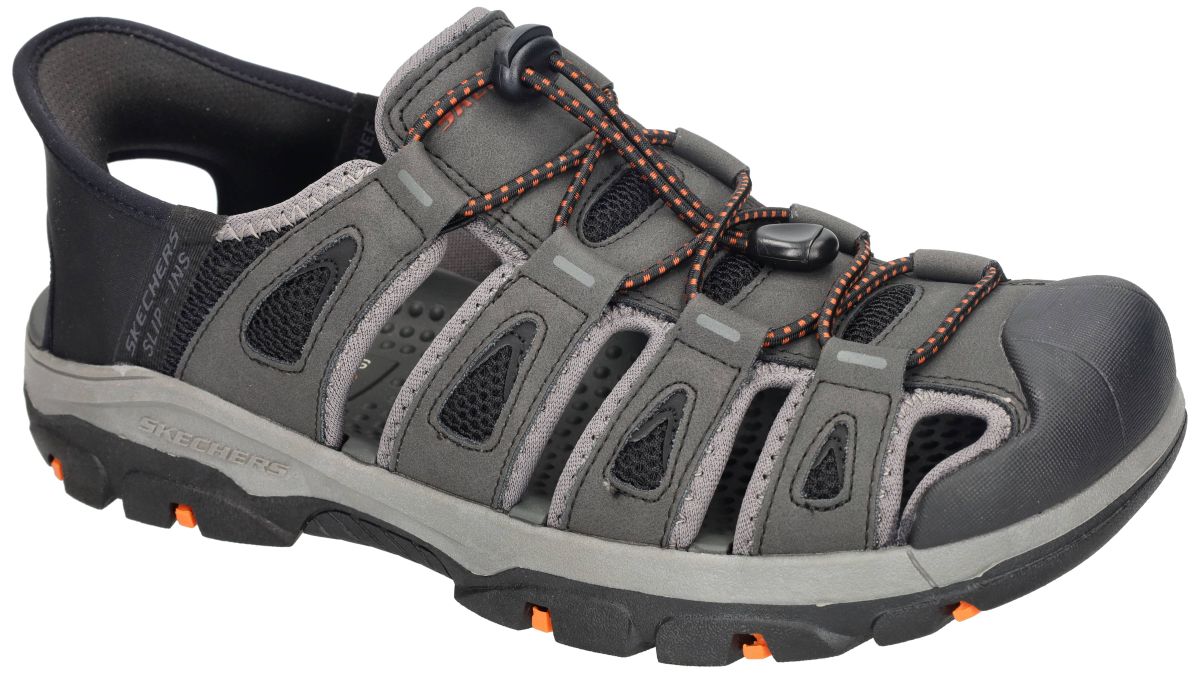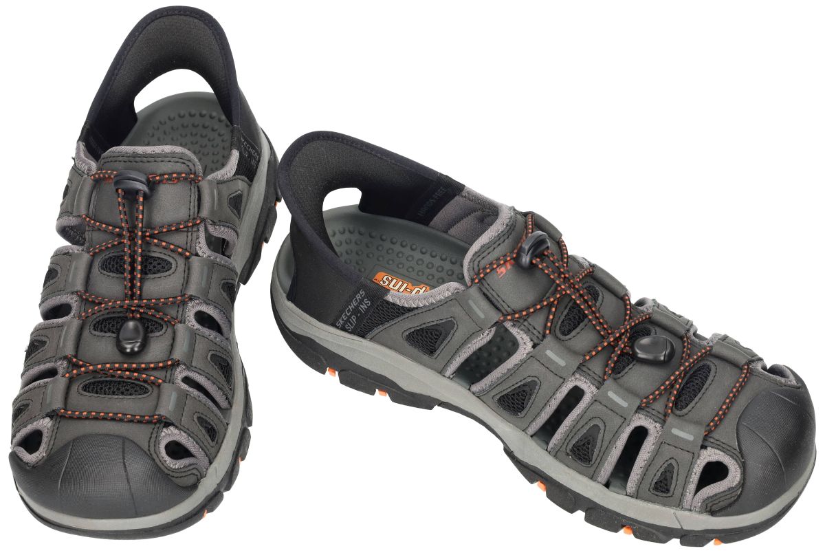 SKECHERS Tresmen – Norvick herensandalen – zwart (artikelnummer 205187) combineren het comfort van een sneaker met de luchtigheid van een sandaal. Dit sportieve fisherman-model in zwart is ontworpen voor mannen die maximale ondersteuning, stabiliteit en gebruiksgemak zoeken tijdens warme dagen, vakanties of actieve uitstappen. Dankzij de Skechers Hands Free Slip-ins® technologie trek je deze sandalen moeiteloos aan, zonder te bukken of handen te gebruiken. De Relaxed Fit™ pasvorm biedt extra ruimte aan de voorvoet en maakt dit model bijzonder geschikt voor bredere voeten of wie graag wat meer bewegingsvrijheid ervaart. Het comfortabele voetbed zorgt voor aangename demping bij elke stap, terwijl de robuuste en schokabsorberende tussenzool vermoeidheid helpt verminderen tijdens langere wandelingen. De gesloten neus beschermt de tenen extra, ideaal bij actieve outdoor-momenten, terwijl de open structuur en mesh-inzetstukken zorgen voor een goede ventilatie. De praktische trekkoordsluiting laat toe de sandaal snel en nauwkeurig aan te passen aan de voet. Onderaan biedt de flexibele rubberen loopzool met grip stabiliteit op uiteenlopende ondergronden, van stadswandelingen tot vakantiepaden. De SKECHERS Tresmen – Norvick is de ideale keuze voor wie een comfortabele, stevige en makkelijk instapbare herensandaal zoekt met een sportieve uitstraling en betrouwbare ondersteuning – perfect voor dagelijks gebruik, reizen en zomerse activiteiten. Skecher herenschoenen vindt men in onze schoenenwinkel regio Aalst, Ninove, Geraardsbergen, Zottegem, Liedekerke of kan men online bestellen op onze webshop.