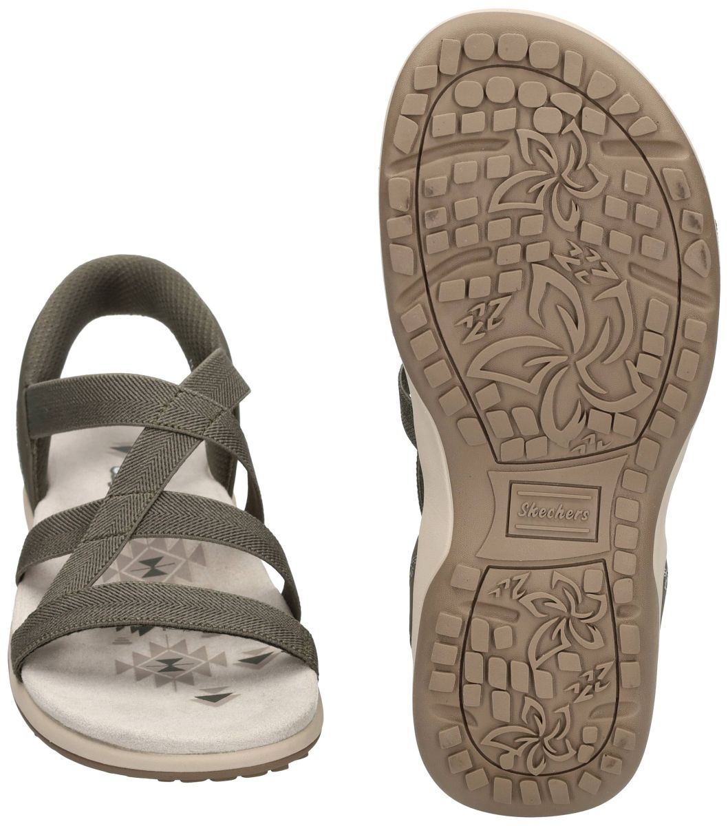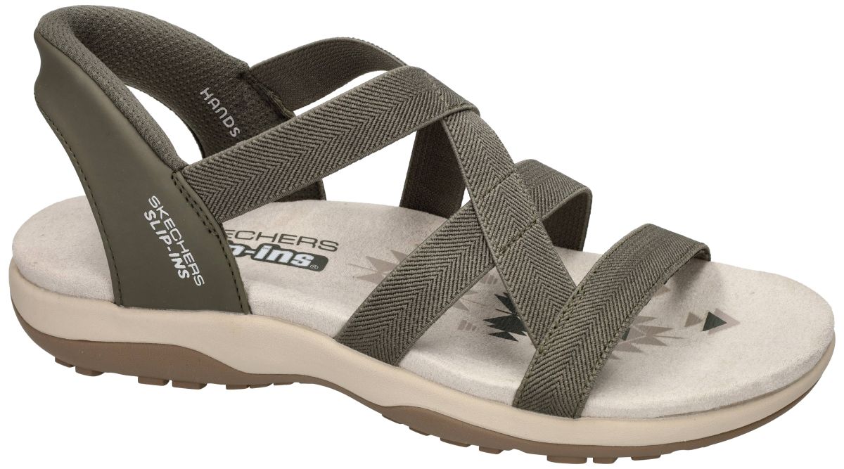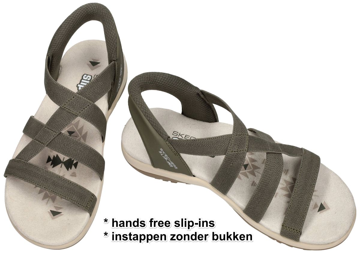 Deze dames sandalen van Skechers, model Reggae Slim – Stretch Flex (artikel 163460) in de kleur olive, combineren sportieve stijl met ultiem draagcomfort. Dankzij het innovatieve Hands Free Slip-ins systeem stap je moeiteloos in, terwijl de Heel Pillow de voet stevig en comfortabel op zijn plaats houdt . De elastische stretch banden sluiten mooi aan rond de voet en zorgen voor een flexibele, sokachtige pasvorm. Het zachte, voorgevormde en dempende voetbed biedt langdurig comfort bij elke stap. De lichte, flexibele loopzool met gripprofiel ondersteunt een natuurlijke afrolbeweging en maakt deze sandaal ideaal voor dagelijks gebruik. De casual outdoor look in olijfgroen wordt mooi aangevuld met subtiele printdetails op het voetbed. Bovendien is dit model vervaardigd uit 100% vegan materialen en zelfs machinewasbaar, wat extra praktisch is . Perfecte keuze voor wie gemak, comfort en een sportieve uitstraling wil combineren. SKECHERS damesschoenen vindt men in onze schoenenwinkel regio Aalst, Ninove, Geraardsbergen, Zottegem, Liedekerke of kan men ook gewoon online bestellen op onze webshop.