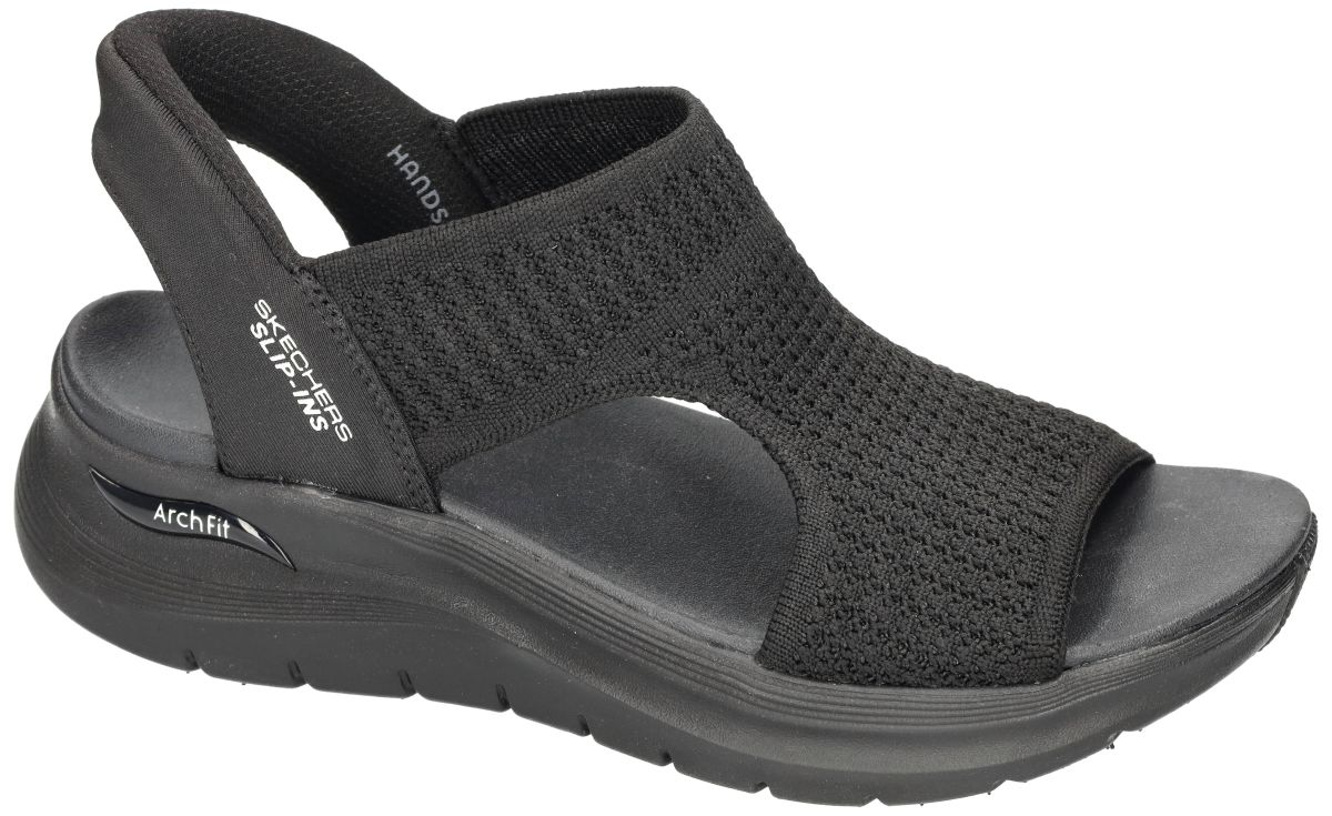 Deze dames sandalen van Skechers, model Arch Fit 2.0 Sandal – My Everyday (artikel 119466) in de kleur zwart, bieden een perfecte combinatie van comfort en gebruiksgemak. Dankzij het Hands Free Slip-ins systeem stap je moeiteloos in zonder te bukken, terwijl de zachte hielconstructie de voet aangenaam ondersteunt. Het elastische stretch bovenwerk sluit mooi aan rond de voet en zorgt voor een flexibele, drukvrije pasvorm. Binnenin zorgt de door podologen ontwikkelde Arch Fit binnenzool voor een optimale ondersteuning van de voetboog, een gelijkmatige drukverdeling en een merkbare vermindering van schokken tijdens het stappen. De lichte, dempende sleehakzool draagt bij aan extra stabiliteit en comfort, ideaal voor dagelijks gebruik. Bovendien is deze sandaal vervaardigd uit textielmaterialen en volledig vegan. Een comfortabele en praktische keuze voor wie elke dag zorgeloos wil stappen in stijl. SKECHERS damesschoenen vindt men in onze schoenenwinkel regio Aalst, Ninove, Geraardsbergen, Zottegem, Liedekerke of kan men ook gewoon online bestellen op onze webshop.