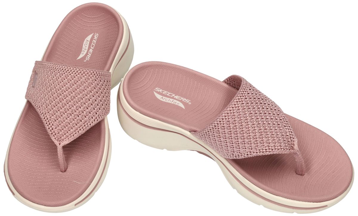 Deze roze teenslippers van Skechers, artikel 140861 model GO WALK Arch Fit 2.0 Sandal – Carrie, combineren een minimalistische look met geavanceerd comfort. Het elastisch gebreide bovenwerk voelt licht en ademend aan en sluit soepel rond de voet. De door podologen ontwikkelde Arch Fit technologie biedt optimale ondersteuning van de voetboog en helpt de druk gelijkmatig te verdelen, wat zorgt voor een merkbaar comfortabelere stap. Het voorgevormde Goga Mat voetbed dempt elke beweging, terwijl de lichte en veerkrachtige ULTRA GO tussenzool extra schokabsorptie en energieteruggave biedt . Dankzij de flexibele loopzool met grip geniet je van stabiliteit bij elke stap. Bovendien is deze teenslipper goedgekeurd door de APMA en vervaardigd uit 100% vegan materialen. Een ideale keuze voor dagelijks comfort, zowel thuis als onderweg, met de gekende Skechers walking-technologie. SKECHERS damesschoenen vindt men in onze schoenenwinkel regio Aalst, Ninove, Geraardsbergen, Zottegem, Liedekerke of kan men ook gewoon online bestellen op onze webshop.