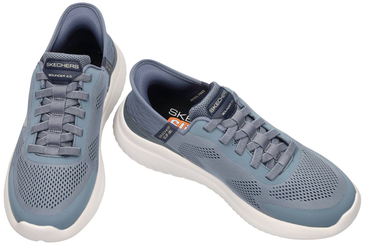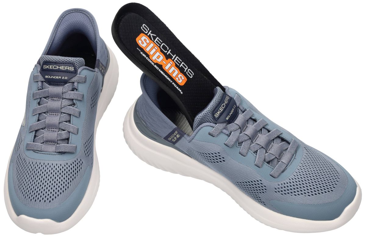 De Skechers Bounder 2.0 – Emerged (artikel 232459) in de kleur Slate is een moderne mannen sneaker die comfort, lichtgewicht en gebruiksgemak perfect combineert. Deze sportieve Slip-ins uitvoering staat garant voor moeiteloos, handenvrij instappen en is ideaal voor mannen die dagelijks comfort willen zonder in te boeten op stijl. De grijs-blauwe upper in ademende mesh zorgt voor een optimale ventilatie van de voet, terwijl de verstevigende rubberen overlays extra duurzaamheid en stabiliteit bieden. De subtiele kleurnuances in Slate geven deze sneaker een frisse, hedendaagse uitstraling die perfect combineert met jeans, chino of sportieve outfits. De sneaker staat op een witte, chunky zool met een sportief profiel. Deze lichtgewicht “Ultra Light” tussenzool dempt elke stap en draagt bij aan het uitzonderlijk lage gewicht van de schoen. Dankzij de flexibele constructie rolt de voet natuurlijk af, wat het draagcomfort tijdens lange dagen merkbaar verhoogt. Binnenin bevindt zich het lucht-gekoelde, geperforeerde Air-Cooled Memory Foam voetbed. Dit vormt zich naar de contouren van de voet, biedt drukverdeling en extra schokabsorptie en zorgt tegelijk voor een fris gevoel dankzij de ventilatiegaatjes. De zachte, gewatteerde kraag en tong verhogen het comfort rond de enkel. Zoals kenmerkend voor de Skechers Slip-ins technologie is deze schoen ontworpen voor handenvrij instappen. De verstevigde hielconstructie zorgt ervoor dat u eenvoudig in de schoen glijdt zonder uw handen te gebruiken, terwijl de pasvorm veilig en comfortabel blijft. Extra troeven van deze Bounder 2.0 – Emerged: Vegan: volledig vervaardigd zonder dierlijke materialen. Machine wasbaar (koud programma, samen met kleding). Lichtgewicht en flexibel ontwerp . Sportieve Skechers branding op zijkant en hiel. De Skechers 232459 in Slate is de ideale keuze voor mannen die een comfortabele, onderhoudsvriendelijke en stijlvolle sneaker zoeken voor dagelijks gebruik, wandelingen of vrije tijd. Comfort, gebruiksgemak en modern design komen hier perfect samen. Skecher herenschoenen vindt men in onze schoenenwinkel regio Aalst, Ninove, Geraardsbergen, Zottegem, Liedekerke of kan men online bestellen op onze webshop.