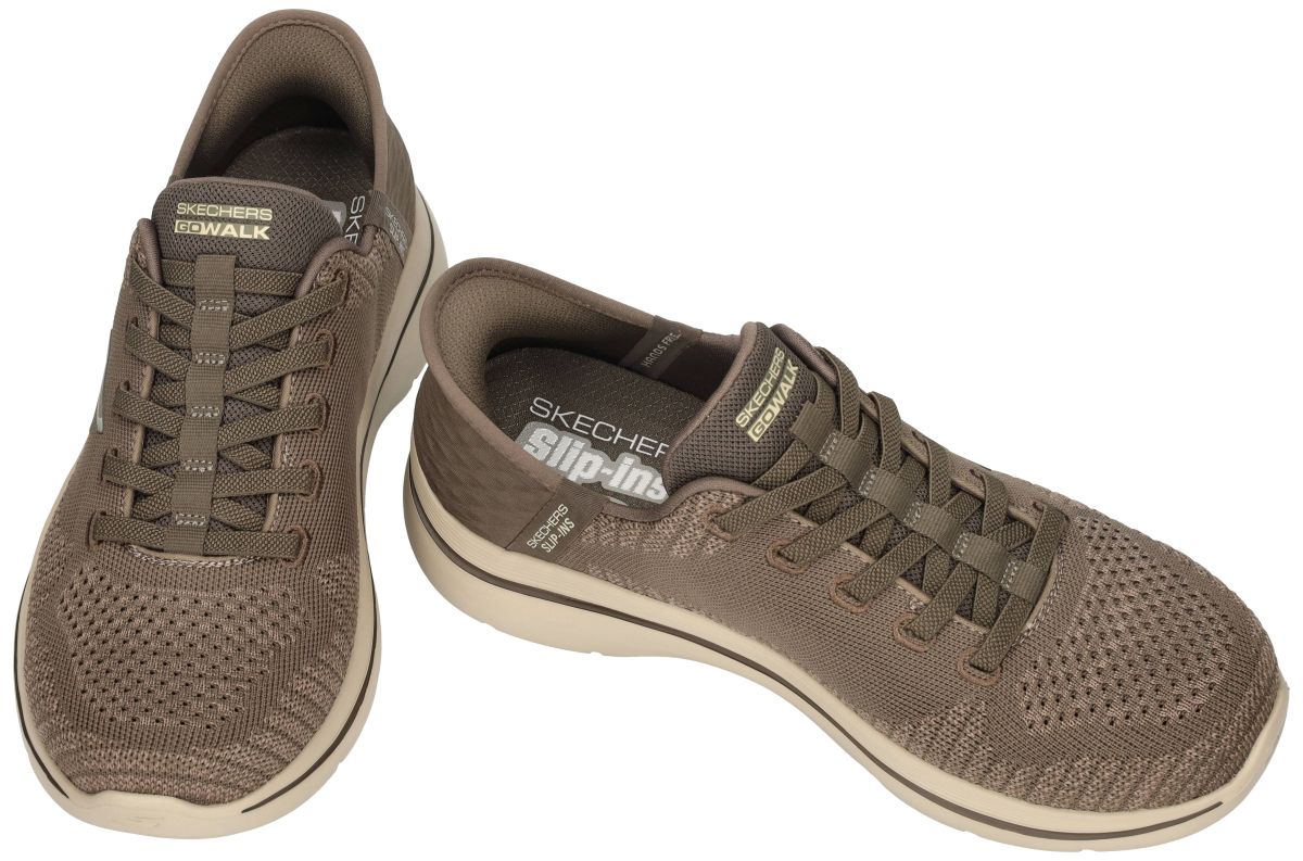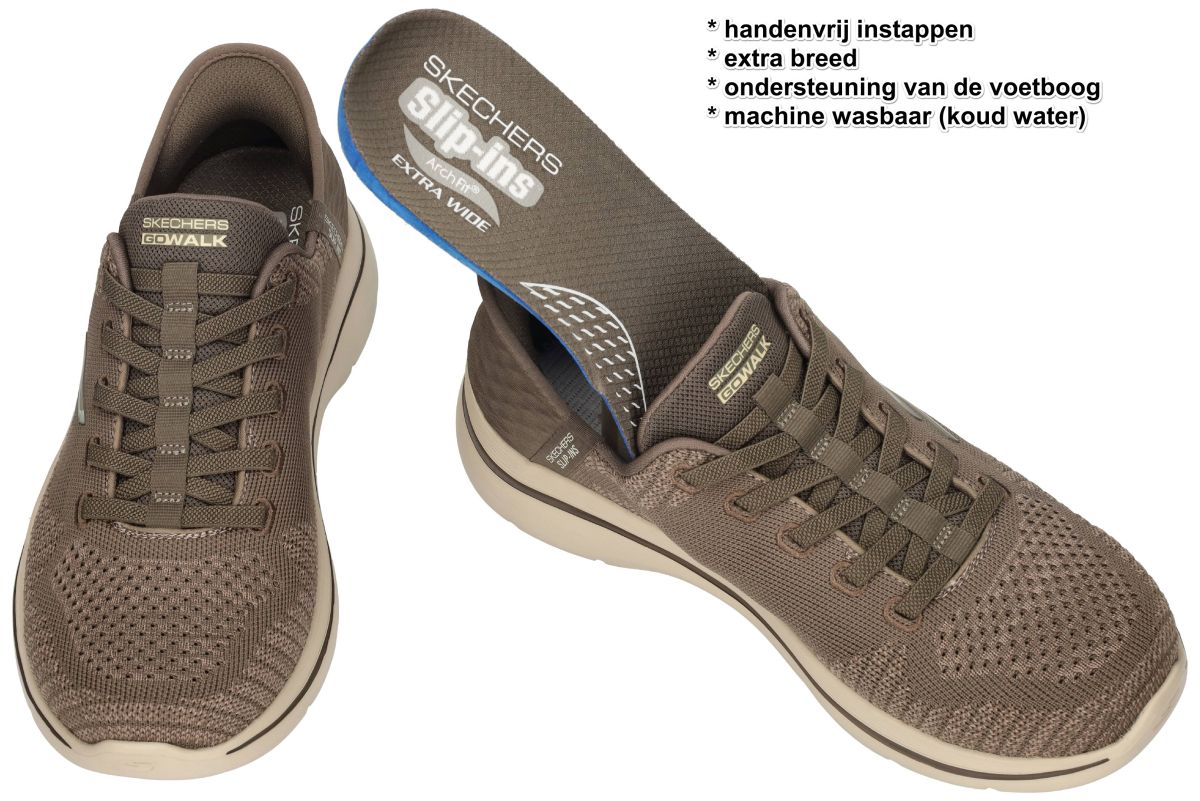 Skechers Go Walk Arch Fit 2.0 – Grand Select 2 Taupe | Extra Wide Fit. Deze heren slip-in sneaker van Skechers is gemaakt voor mannen die maximaal comfort, extra ruimte én gebruiksgemak verwachten. De Go Walk Arch Fit 2.0 – Grand Select 2 in taupe combineert een sportief-verzorgde look met slimme comforttechnologie, perfect voor dagelijks gebruik, lange dagen rechtstaan of ontspannen wandelingen. Dankzij het innovatieve Hands Free Slip-Ins®-systeem stap je moeiteloos in en uit de schoen, zonder te bukken of je handen te gebruiken. Ideaal voor wie comfort en snelheid belangrijk vindt. Deze uitvoering is bovendien uitgevoerd in Extra Wide Fit, wat betekent dat de schoen extra breed valt en uitermate geschikt is voor bredere, gezwollen of volumineuze voeten. Het uitneembare Arch Fit®-voetbed, ontwikkeld in samenwerking met Amerikaanse podologen en gebaseerd op uitgebreid voetonderzoek, biedt doelgerichte ondersteuning van de voetboog en helpt de druk gelijkmatig over de voet te verdelen. Dit vermindert vermoeidheid en verhoogt het draagcomfort, zelfs na vele uren stappen. De lichtgewicht ULTRA GO®-tussenzool zorgt voor aangename demping en veerkracht bij elke stap. Het ademende, gebreide bovenwerk voelt soepel aan rond de voet en past zich mooi aan, terwijl de stabiele rubberen loopzool extra grip en vertrouwen geeft. Praktisch detail: deze sneaker is machine wasbaar (koud water), waardoor hij eenvoudig fris en netjes blijft. Waarom kiezen voor dit model? Hands Free Slip-Ins®: instappen zonder handen. Extra Wide Fit: ideaal voor brede en volumineuze voeten. Arch Fit®-voetbed met ondersteuning van de voetboog. Lichtgewicht en schokdempend. ULTRA GO®-comfort . Ademend textiel bovenwerk. Machine wasbaar. Verzorgde taupe kleur, makkelijk combineerbaar. Een perfecte keuze voor heren die ruimte, ondersteuning en comfort willen, zonder in te boeten op stijl. Een echte dagelijkse comforttopper uit het Skechers-gamma. Skecher herenschoenen vindt men in onze schoenenwinkel regio Aalst, Ninove, Geraardsbergen, Zottegem, Liedekerke of kan men online bestellen op onze webshop.