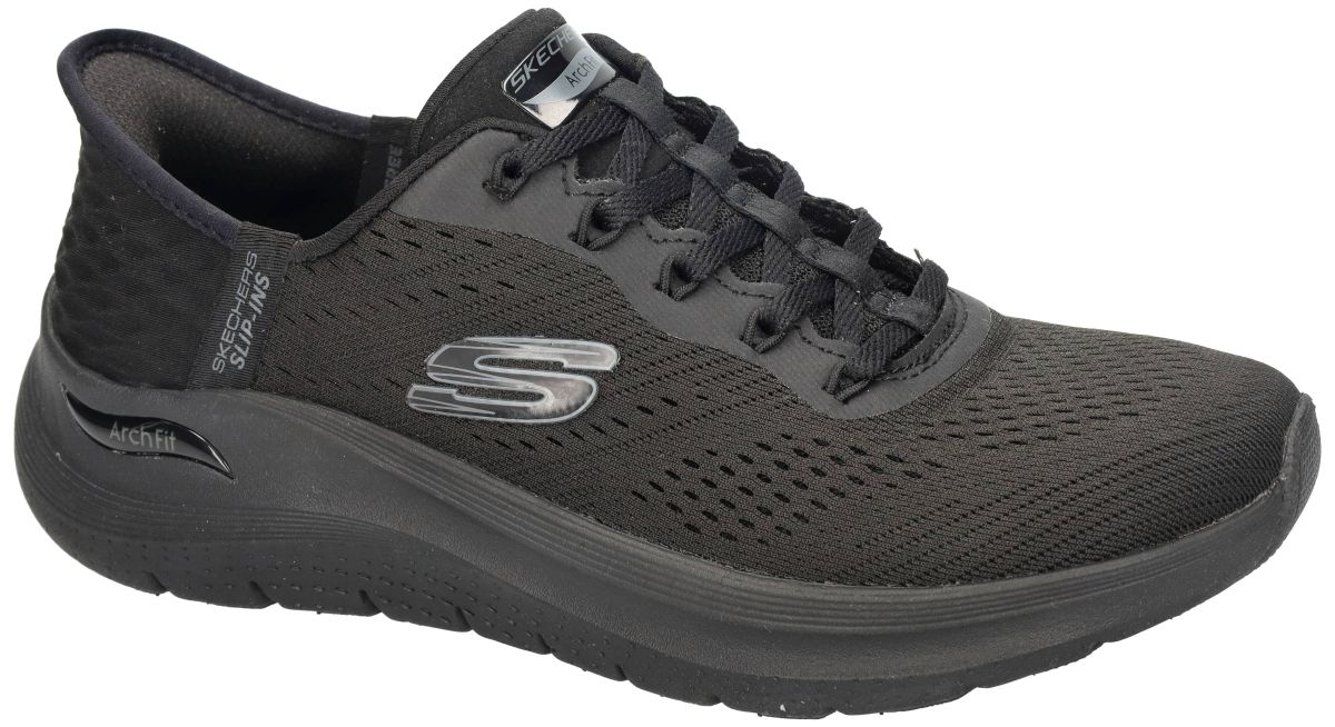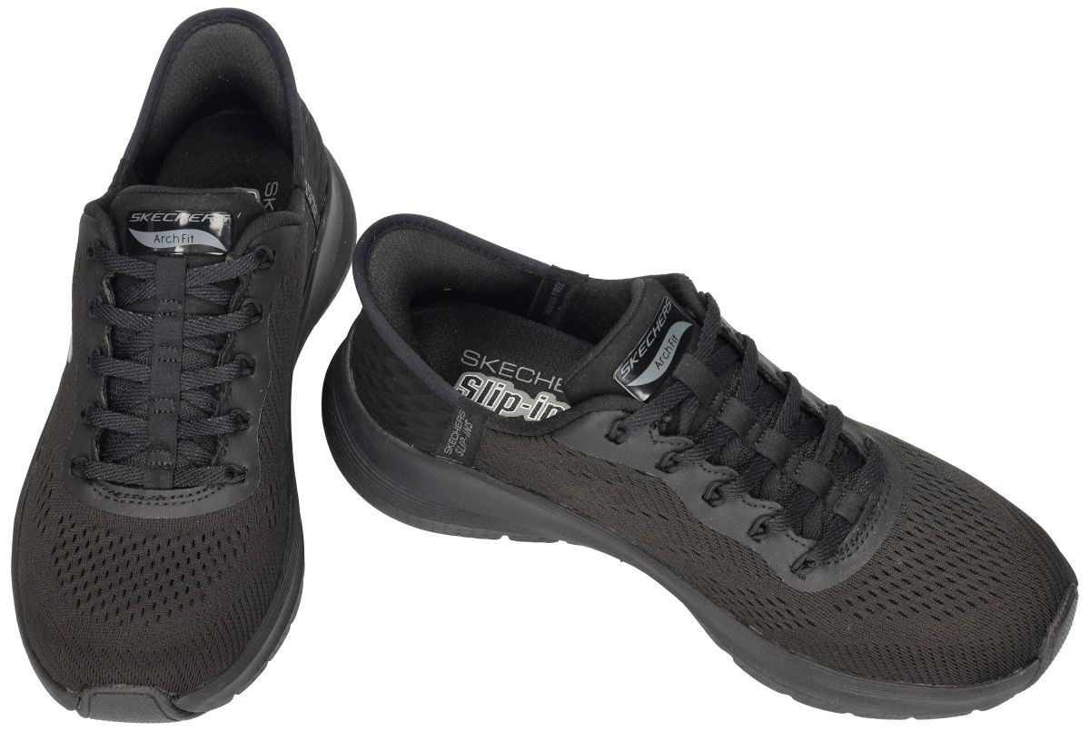 Ervaar maximaal comfort en ultiem gebruiksgemak met deze zwarte SKECHERS Slip-Ins uit de Arch Fit 2.0 – Easy Chic collectie, artikelnummer 150066 in de uitvoering black. Deze dames hand-free instappers combineren sportieve elegantie met geavanceerde ondersteuning voor dagelijks intensief gebruik. Het innovatieve Hands Free Slip-Ins ontwerp laat je volledig handenvrij instappen. Geen bukken, geen veters strikken, geen gedoe – gewoon instappen en vertrekken. De verstevigde hielconstructie vormt zich perfect rond de voet en zorgt voor onmiddellijke stabiliteit en comfort. Deze sneaker is uitgerust met de door podologen gecertificeerde Arch Fit voetboogondersteuning. Het anatomisch ontworpen voetbed werd ontwikkeld op basis van uitgebreide voetstudies en helpt de druk beter te verdelen over de volledige voetzool. Dankzij de schokabsorberende eigenschappen wordt de impact van het lichaamsgewicht aanzienlijk verminderd, wat zorgt voor minder belasting van voeten, knieën en rug. Bovendien is het voetbed voorzien van ventilatiegaatjes die de voeten verluchten en fris houden. De upper bestaat uit ademend zwart mesh textiel dat naadloos aansluit rond de voet. In combinatie met de zwarte lichtgewicht kunststof zool ontstaat een moderne, volledig ton-sur-ton look die stijlvol én functioneel is. Omdat deze sneaker volledig vervaardigd is zonder dierlijke materialen, is hij bovendien 100% Vegan. Extra praktisch: deze SKECHERS Arch Fit 2.0 Easy Chic is machine wasbaar met koud water, ideaal voor wie zijn sneakers graag fris en netjes houdt. Kortom, een sportieve zwarte comfort sneaker die gezien mag worden en tegelijk topprestaties levert op vlak van ondersteuning, demping en gebruiksgemak. Gewoon instappen en gaan – elke dag opnieuw. SKECHERS damesschoenen vindt men in onze schoenenwinkel regio Aalst, Ninove, Geraardsbergen, Zottegem, Liedekerke of kan men ook gewoon online bestellen op onze webshop.