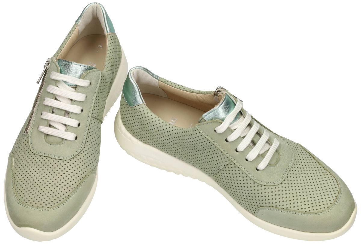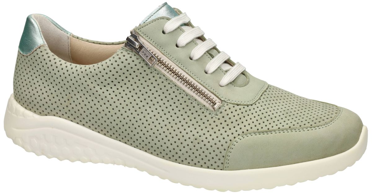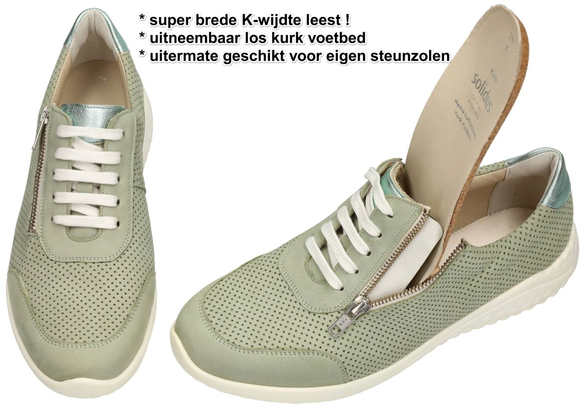 Ontdek de optimale mix van comfort en stijl met de Solidus Kyle Velour schoenen in een jade groen velourleder die op alles past. Deze chunky moderne sneakers hebben een super brede K-wijdte leest en zijn ontworpen voor vrouwen met ietwat bredere en volumineuze voeten die extra comfort zoeken. De Solidus Kyle Velour schoenen zijn uitgevoerd in zacht nubuck, verrijkt met uit gestanste fijne ronde stipjes, wat zorgt voor een ademende en modieuze textuur. Deze elegante stipjes geven de schoenen een speels karakter zonder in te leveren op de chique uitstraling. Rond de enkel is een zacht gepolsterde boord toegevoegd, wat extra comfort biedt en irritatie of drukpunten voorkomt. Het gemak van aan- en uittrekken wordt gegarandeerd door de toevoeging van een gemakkelijke ritssluiting, naast de traditionele veters, wat betekent dat je geen tijd verspilt met knopen en strikken. De binnenkant van de schoen is niet minder indrukwekkend met een los, met leder bekleed kurken voetbed dat niet alleen luxueus aanvoelt, maar ook uitneembaar is voor degenen die hun eigen steunzolen nodig hebben. Onderaan vind je een schok dempende loopzool, die elke stap verzacht en de impact van het gewicht op je gewrichten minimaliseert, wat deze schoenen ideaal maakt voor langdurig gebruik, ongeacht je dagelijkse activiteiten. Of je nu een lange dag voor de boeg hebt op het werk, een wandeling maakt in het park, of een dagje uit gaat shoppen, de Solidus Kyle sneakers zijn je perfecte metgezel. Bestel nu en ervaar het ultieme comfort in een stijlvolle schoen die gemaakt is om jouw levensstijl te ondersteunen.