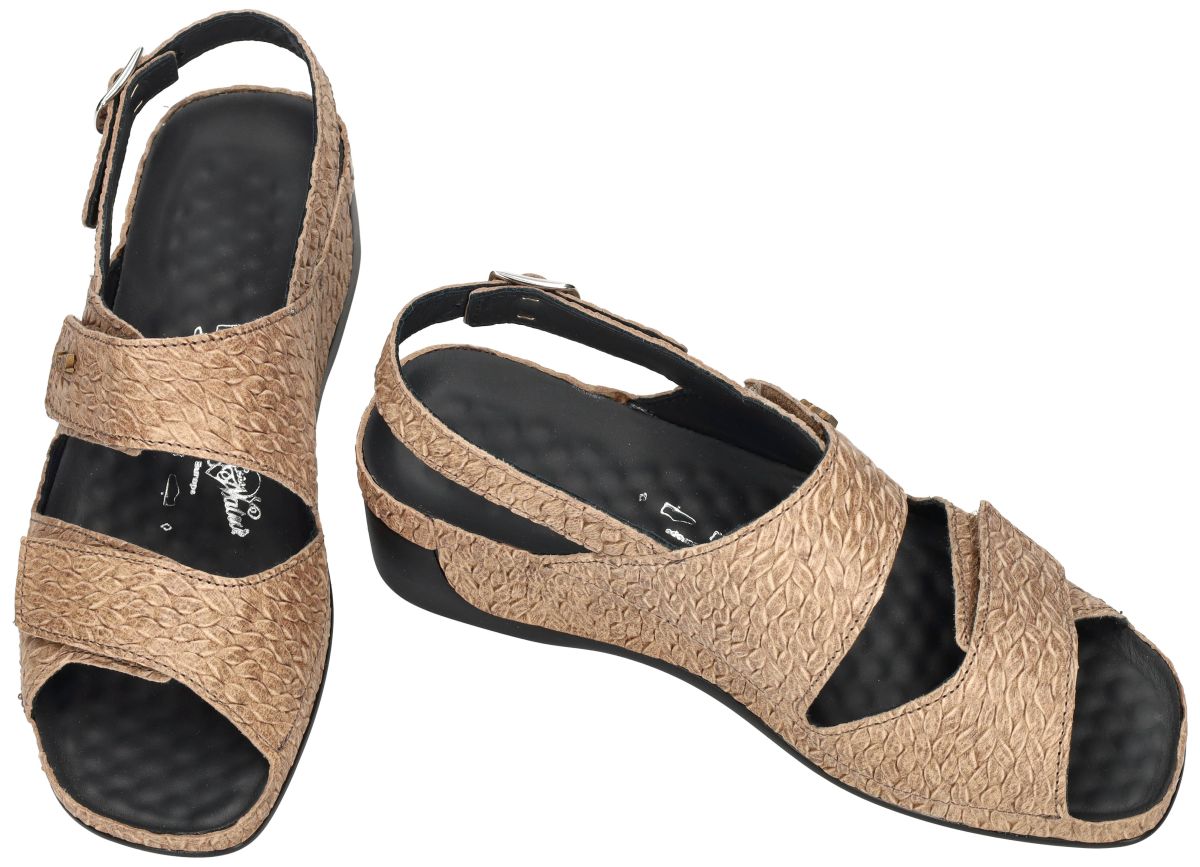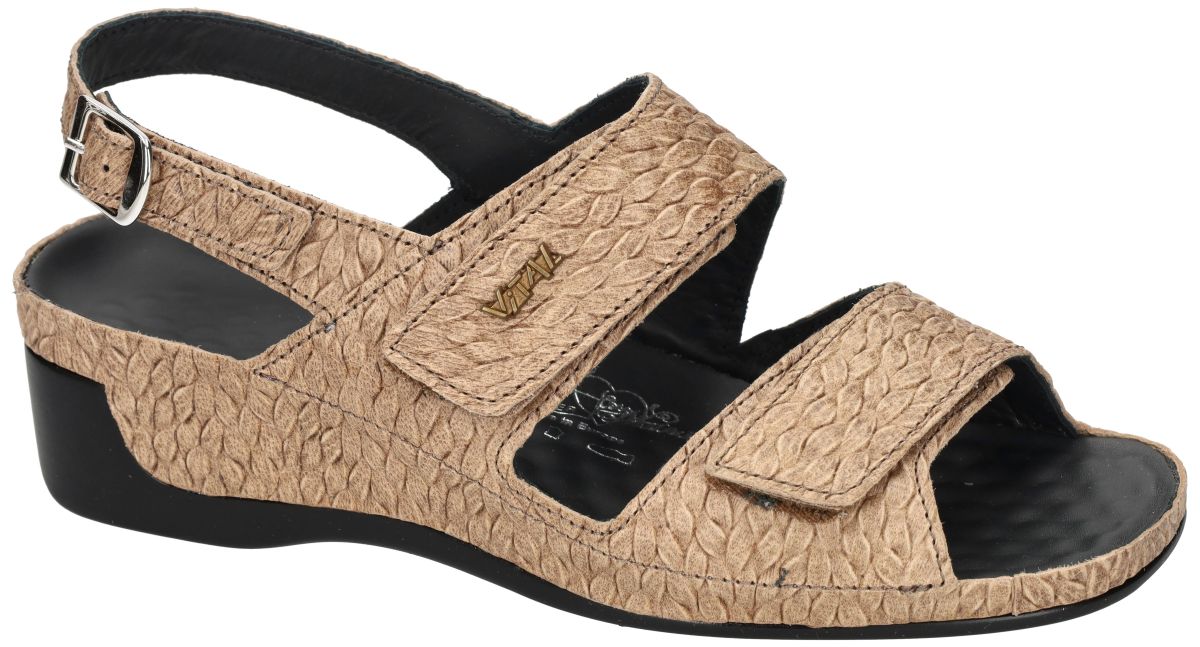 VITAL artikel/model 206504 TINA Valkeria Schlamm zijn licht bruine aardekleurige met een opvallende vlecht print damesschoenen comfort gezondheids sandalen (sleehaksandaal) uit de nieuwe lente/zomer collectie 2026 van de Oostenrijkse schoenenfabrikant en schoenenmerk VITAL antivarice - anti-spatader. Deze VITAL sandalen zijn uitgevoerd in een bruine zandkleurige aardetint met uitgesproken vlechten-print en staan op een comfortabele en stabiele sleehak van 4 cm en is voorzien van gemakkelijke en aanpasbare klittenbandsluiting of velcrosluiting over de wreef. VITAL relax - massage schoenen zijn gekend om hun perfecte afwerking en hun heilzame werking op de bloedsomloop in de voeten en benen. Door de gebobbelde binnenzool waardoor spataders worden voorkomen. De Vital schoenzool heeft immers een dubbele werking: Door zijn massage van de voetzool wordt de bloedcirculatie en de werking van het bloedvatenstelsel in de voetzool bevordert en ontspant zo uw benen en gaat ook spataders vorming tegen. Eveneens worden de reflex kringloop-zones onderaan de voetzool heilaam gestimuleerd die de functies van verschillende lichaamsorganen regelen. Alles samen zorgt dit voor een totale ontspanning van het hele lichaam. VITAL slippers en muiltjes schoenen vindt u in onze schoenenwinkel regio Aalst, Ninove, Geraardsbergen, Zottegem, Liedekerke of u kan online bestellen op onze webshop.