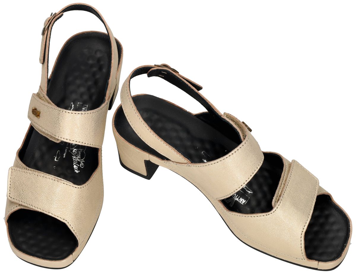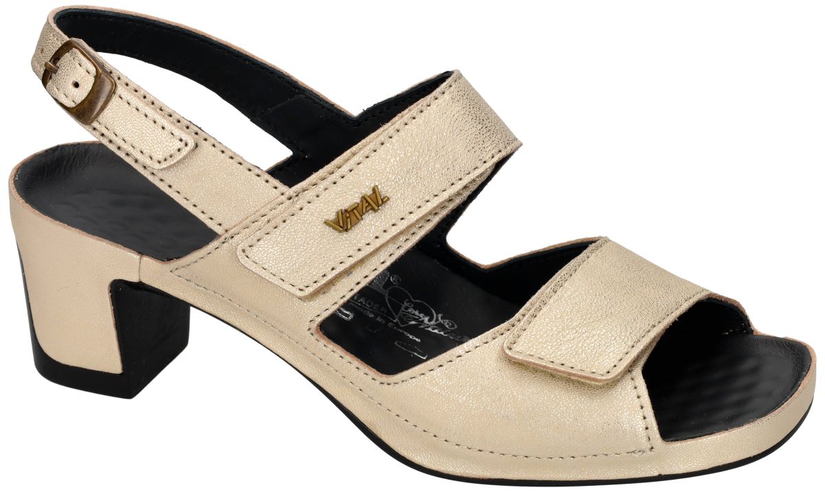 Deze wellness sandalen van het Oostenrijkse schoenenmerk Vital, model Joy (artikel 181979) in de uitvoering Mathilda Gold, combineren elegantie met uitzonderlijk comfort. Het bovenwerk in licht goud poeder-print geeft deze sandaal een stijlvolle en tijdloze uitstraling, perfect voor zomerse outfits. De comfortabele blokhak lift de hiel ongeveer 5 cm en zorgt voor een stabiele en vrouwelijke houding. Dankzij de verstelbare klittenbandsluiting en het hielriempje met gesp geniet u van een veilige en persoonlijke pasvorm. Het typische Vital massagevoetbed met subtiele noppen stimuleert de reflexzones onder de voet, bevordert de bloedsomloop en helpt vermoeide voeten en zware benen te verlichten. Bovendien ondersteunt het de natuurlijke lichaamshouding en zorgt het voor een aangenaam, ontspannen loopgevoel. Een ideale keuze voor dames die gezondheid, comfort en een elegante look willen combineren. VITAL sandalen vindt u in onze schoenenwinkel regio Aalst, Ninove, Geraardsbergen, Zottegem, Liedekerke of u kan online bestellen op onze webshop.