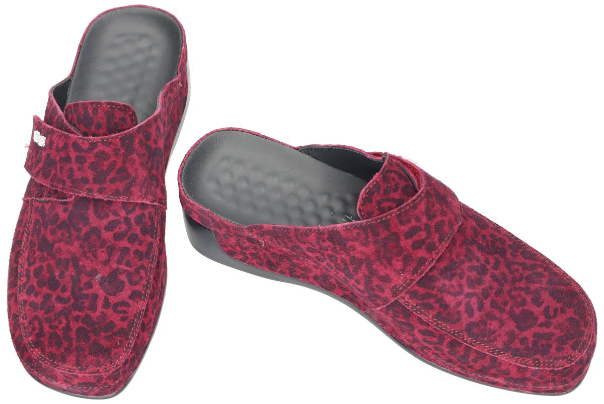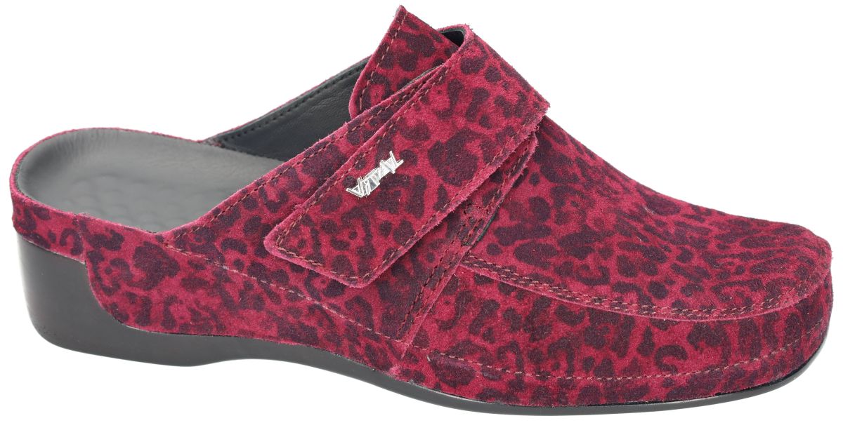 VITAL model/artikel 196815 TINA Mutino Wine zijn bordeaux rood nubuck met zwarte luipaardvlekken print damesschoenen comfort gezondheids slippers of muiltjes uit de herfst/winter 2025 collectie van de Oostenrijkse schoenenfabrikant en schoenenmerk VITAL antivarice - anti-spatader. Deze VITAL slipper is uitgevoerd in een donker bordeaux velour suède met daarop een luipaardprint in zwarte vlekjes en staat op een stabiele sleehak van 3,5 cm en is voorzien van gemakkelijke en aanpasbare klittenbandsluiting of velcrosluiting over de wreef. VITAL relax - massage schoenen zijn gekend om hun perfecte afwerking en hun heilzame werking op de bloedsomloop in de voeten en benen. Door de gebobbelde binnenzool waardoor spataders worden voorkomen. De Vital schoenzool heeft immers een dubbele werking: Door zijn massage van de voetzool wordt de bloedcirculatie en de werking van het bloedvatenstelsel in de voetzool bevordert en ontspant zo uw benen en gaat ook spataders vorming tegen. Eveneens worden de reflex kringloop-zones onderaan de voetzool heilaam gestimuleerd die de functies van verschillende lichaamsorganen regelen. Alles samen zorgt dit voor een totale ontspanning van het hele lichaam. VITAL slippers en muiltjes schoenen vindt u in onze schoenenwinkel regio Aalst, Ninove, Geraardsbergen of u kan online bestellen op onze webshop.