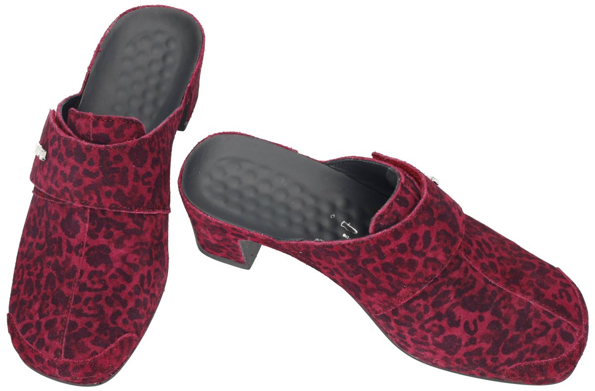 VITAL model/artikel 199205 JOY Mutino Wine zijn bordeaux rode met zwarte luipaardprint damesschoenen comfort gezondheids gesloten luxueuze muiltjes op losse hak uit de nieuwe herfst/winter collectie van de Oostenrijkse schoenenfabrikant en schoenenmerk VITAL antivarice - anti-spatader. Deze VITAL muiltjes in hoogkwalitatief suède (nubuck) in bordeaux-zwart luipaardprint staan op een stabiele losse blokhak van 4,5 cm en zijn voorzien van gemakkelijke en aanpasbare klittenbandsluiting of velcrosluiting over de wreef. VITAL relax - massage schoenen zijn gekend om hun perfecte afwerking en hun heilzame werking op de bloedsomloop in de voeten en benen. Door de gebobbelde binnenzool waardoor spataders worden voorkomen. De Vital schoenzool heeft immers een dubbele werking: Door zijn massage van de voetzool wordt de bloedcirculatie en de werking van het bloedvatenstelsel in de voetzool bevordert en ontspant zo uw benen en gaat ook spataders vorming tegen. Eveneens worden de reflex kringloop-zones onderaan de voetzool heilaam gestimuleerd die de functies van verschillende lichaamsorganen regelen. Alles samen zorgt dit voor een totale ontspanning van het hele lichaam. VITAL slippers en muiltjes schoenen vindt u in onze schoenenwinkel regio Aalst, Ninove, Geraardsbergen of u kan online bestellen op onze webshop.