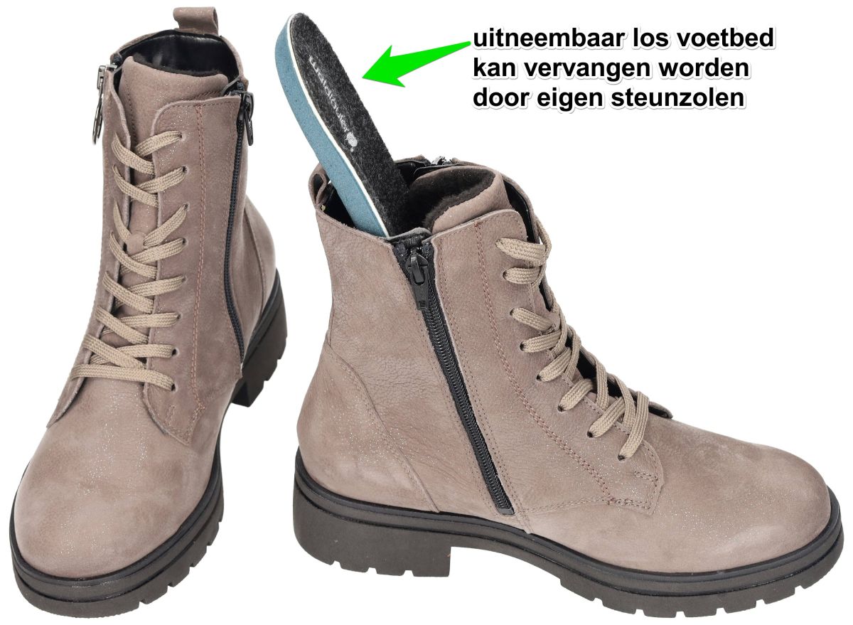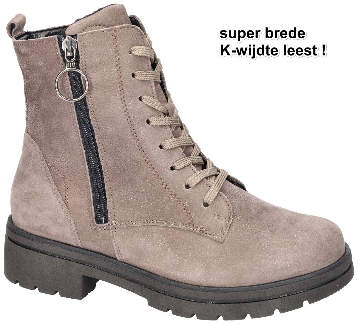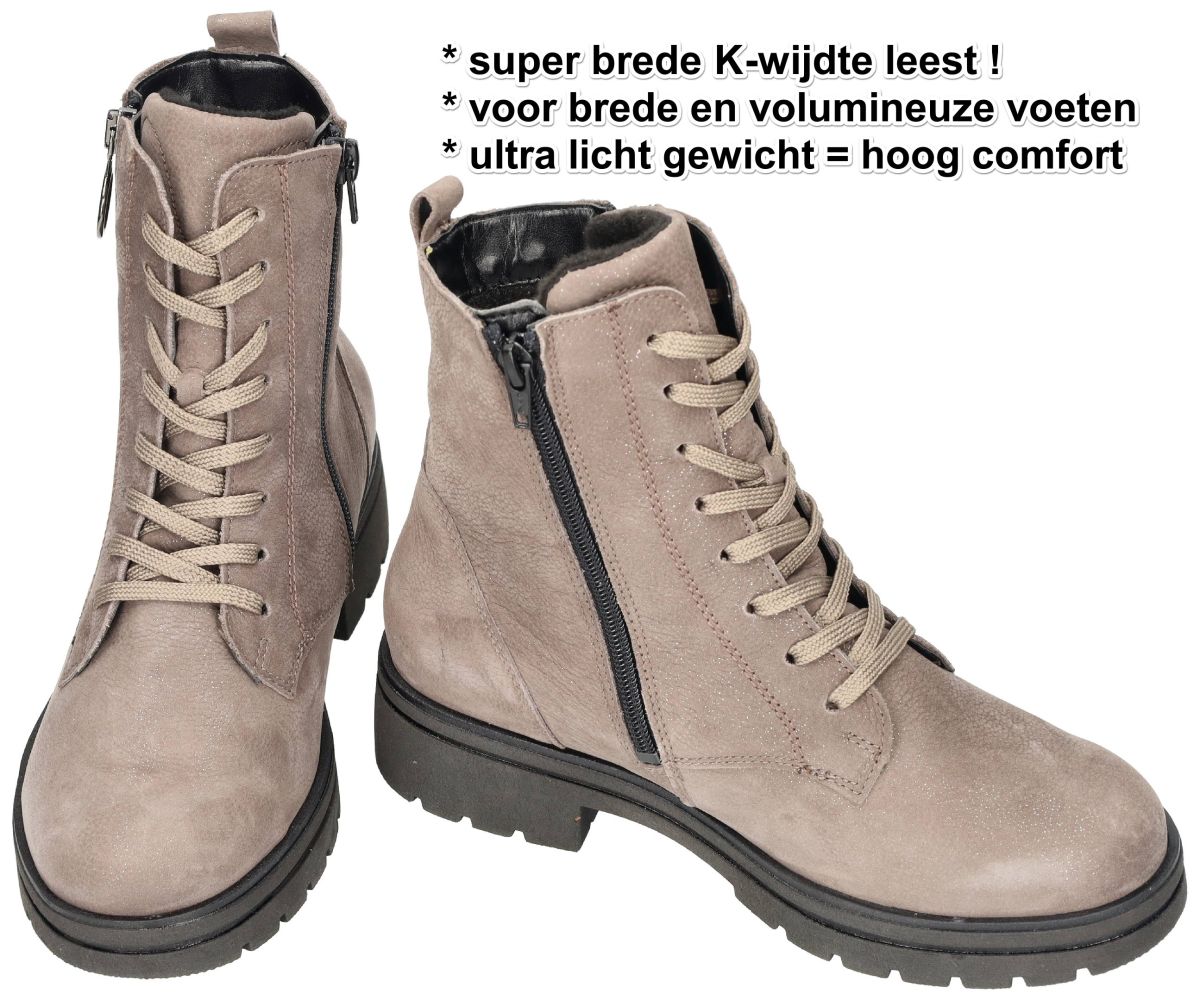 Maak kennis met deze prachtige Waldlaufer stoere veterboots, model 648803 K-Zoe, in een passende taupe nubuck met fijne sparkeling. Deze bottines of halfhoge veterlaarzen zijn speciaal ontworpen voor dames die niet alleen stijl maar ook comfort belangrijk vinden. De super brede K-wijdte leest zorgt ervoor dat zelfs de meest brede en volumineuze voeten voldoende ruimte krijgen, wat deze schoenen perfect maakt voor degenen die normaal gesproken moeite hebben met het vinden van comfortabel passend schoeisel. Deze boots zijn vervaardigd met een schachthoogte van 15 cm, ideaal voor optimale steun zonder in te boeten aan stijl. Ze zijn ook uitzonderlijk licht van gewicht, wat extra comfort biedt tijdens het lopen. Het uitneembare voetbed is een geweldige functie, omdat het de mogelijkheid biedt om het te vervangen door eigen steunzolen voor diegenen die specifieke voetondersteuning nodig hebben. De combinatie van veter- en ritssluitingen aan beide zijden van de schacht verzekeren niet alleen een veilige pasvorm, maar maakt het ook gemakkelijk om de boots aan en uit te trekken. Deze veelzijdige en modieuze veterboots zijn een must-have voor iedere vrouw die waarde hecht aan zowel mode als functie. Deze sparkelende taupe Waldlaufer K-Zoe boots bieden een perfecte mix van praktische eigenschappen en trendy design, ideaal voor dagelijks gebruik. Waldlaufer schoenen, boots, laarzen kan men aanschaffen in onze schoenenwinkel regio Aalst, Ninove, Geraardsbergen, Zottegem, Liedekerke of online bestellen op onze webshop.