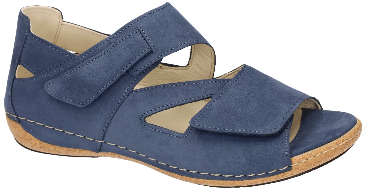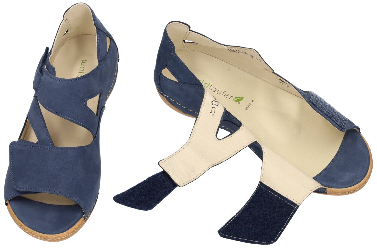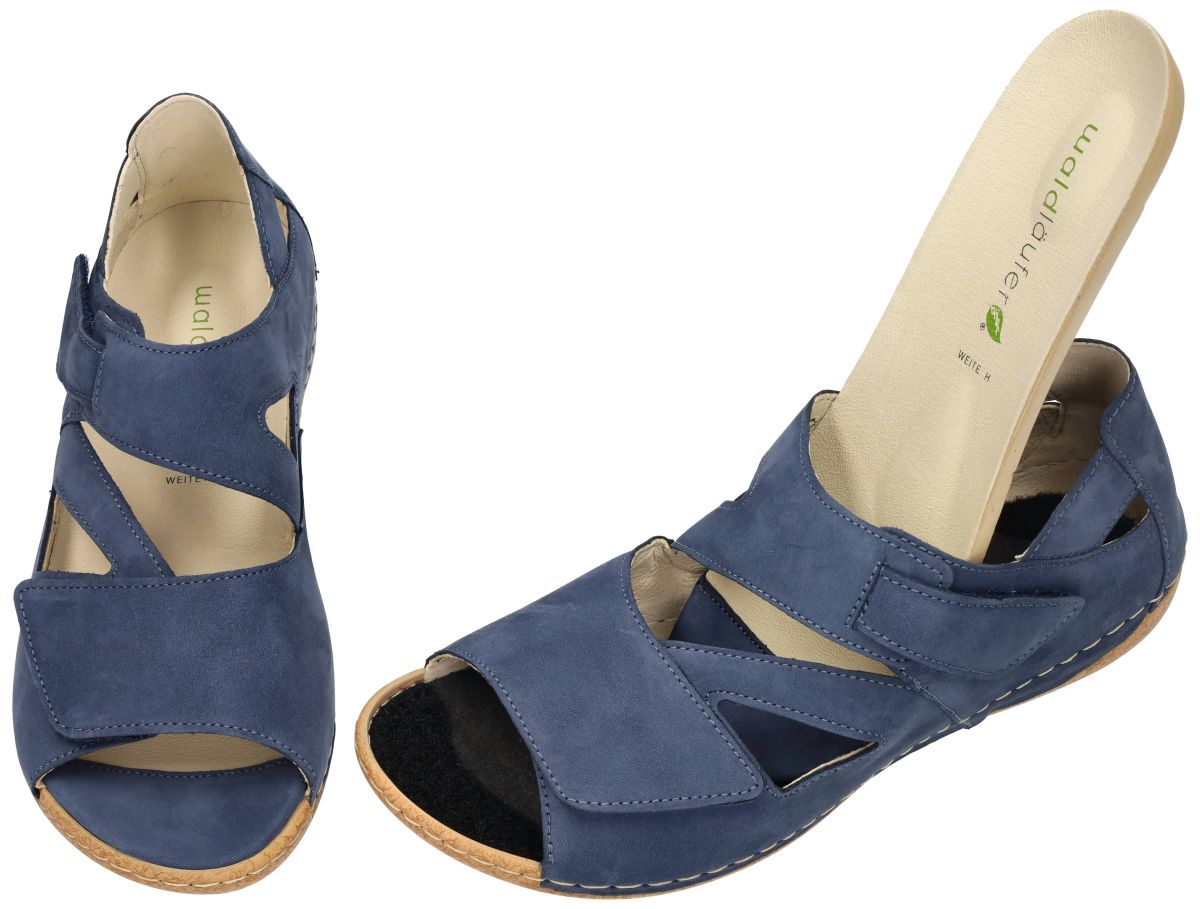WALDLAUFER artikel/model 342025 191 206 (H) HELIETT - Denver Jeans zijn jeansblauwe damesschoenen orthopedische comfort sandalen met gesloten hiel of contrefort uit de nieuwe lente/zomer 2026 collectie van het bekende Duitse schoenenmerk Waldlaufer. Deze Waldlaufer H Heliett sandaal heeft een upper vervaardigd in een cobaltblauw nubuck. Deze orthopedische comfortsandaal is speciaal ontworpen met een gesloten hielstuk of contrefort voor specifieke orthopedische en podologische vereisten. Het anatomisch gevormde losse voetbed kan indien nodig worden vervangen door eigen steunzolen. Deze comfortsandaal is 100% leder gevoerd. Ultiem comfort aan een democratische prijs! De Waldläufer Heliett (modelnummer 342025) is een damessandaal die comfort en stijl combineert, ideaal voor dagelijks gebruik. Het bovenwerk is vervaardigd van hoogwaardig jeansblauw nubuckleer, wat zorgt voor een luxe uitstraling en duurzaamheid. Voorzien van twee klittenbandsluitingen, waardoor de sandaal gemakkelijk aan te passen is voor een optimale pasvorm en eenvoudig aan- en uit te trekken is. Uitneembaar voetbed, waardoor het mogelijk is om persoonlijke inlegzolen te gebruiken voor extra comfort en ondersteuning. De soepele rubberen zool biedt goede grip en stabiliteit tijdens het lopen. Ontworpen in wijdte H, wat betekent dat de sandaal geschikt is voor de bredere voet en extra comfort biedt. Deze sandaal is ideaal voor dames die op zoek zijn naar een combinatie van comfort en modieus design. Waldlaufer schoenen kan men kopen in onze schoenenwinkel regio Aalst, Ninove, Geraardsbergen, Zottegem, Liedekerke of online bestellen op onze webshop