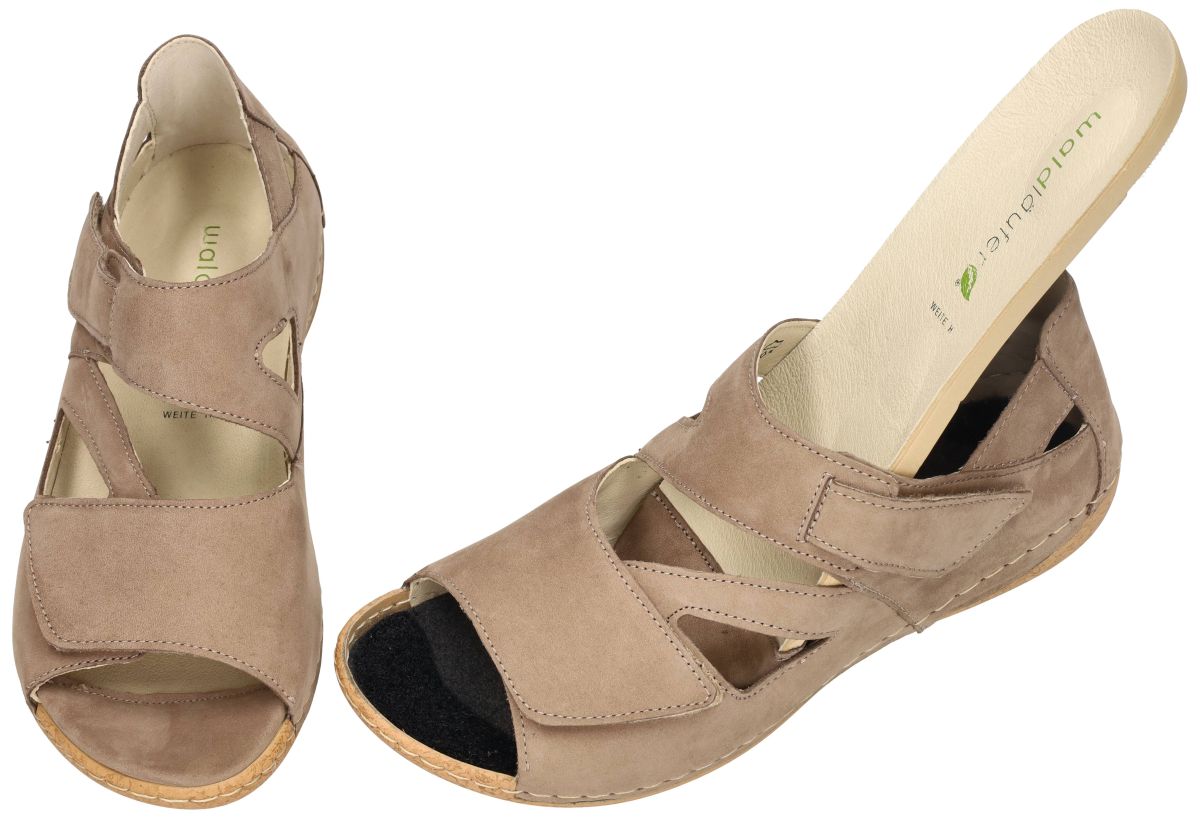 WALDLAUFER artikel/model 342025 191 060 (H) HELIETT - Denver Beige zijn taupe of pastel bruine damesschoenen orthopedische comfort sandalen met gesloten hiel of contrefort uit de nieuwe lente/zomer 2026 collectie van het bekende Duitse schoenenmerk Waldlaufer. Deze Waldlaufer H Heliett sandaal heeft een upper vervaardigd in een zachtbruin of pastel bruin nubuck. Deze orthopedische comfortsandaal is speciaal ontworpen met een gesloten hielstuk of contrefort voor specifieke orthopedische en podologische vereisten. Het anatomisch gevormde losse voetbed kan indien nodig worden vervangen door eigen steunzolen. Deze comfortsandaal is 100% leder gevoerd. Ultiem comfort aan een democratische prijs! De Waldläufer Heliett (modelnummer 342025) is een damessandaal die comfort en stijl combineert, ideaal voor dagelijks gebruik. Het bovenwerk is vervaardigd van hoogwaardig taupe nubuckleer, wat zorgt voor een luxe uitstraling en duurzaamheid. Voorzien van twee klittenbandsluitingen, waardoor de sandaal gemakkelijk aan te passen is voor een optimale pasvorm en eenvoudig aan- en uit te trekken is. Uitneembaar voetbed, waardoor het mogelijk is om persoonlijke inlegzolen te gebruiken voor extra comfort en ondersteuning. De soepele rubberen zool biedt goede grip en stabiliteit tijdens het lopen. Ontworpen in wijdte H, wat betekent dat de sandaal geschikt is voor de bredere voet en extra comfort biedt. Deze sandaal is ideaal voor dames die op zoek zijn naar een combinatie van comfort en modieus design. Waldlaufer schoenen kan men kopen in onze schoenenwinkel regio Aalst, Ninove, Geraardsbergen, Zottegem, Liedekerke of kan men online bestellen op onze webshop