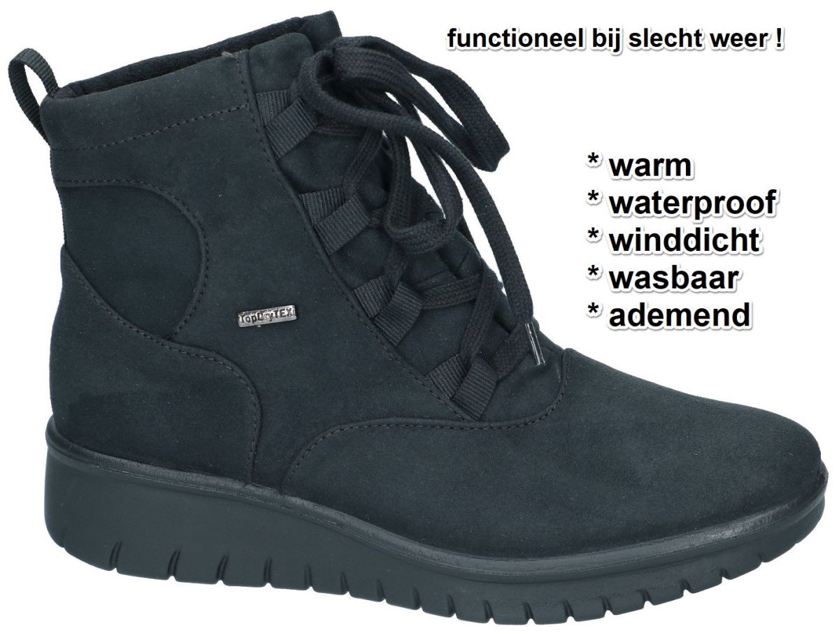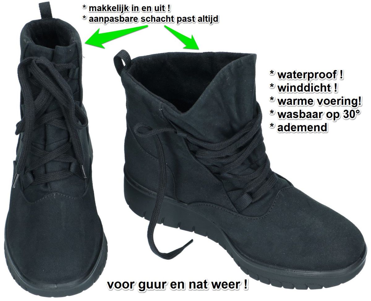 WESTLAND (voorheen ROMIKA) model/artikel 32908 Calais 08 zwart is bestand tegen Sneeuw, Regen, Wind, Koude bestendig + WASBAAR! De Westland Calais 08 schwarz sneeuwlaarsjes zijn praktische en functionele waterdichte, winddicht enkellaarsje of botje van de Duitse schoenenfabriek Josef Seibel zijn uitermate geschikt voor in de sneeuw, regen, wind en vrieskoude. Dit Westland Calais 08 laarsje heefteen warme voering en een sterke antislipzool met een schacht waar de broekspijp in kan ingesloten worden. Het materiaal van deze westland Calais boots is amaretta topdry textiel dat waterdicht en toch ademend is en bovendienmakkelijk wasbaar op 30 graden. De Varese laarsjes hebben een ruime G-wijdte leest en een uitneembaar voetbed en zijn dus ook geschikt voor steunzolen. Ademende, vocht en temperatuur regulerende materialen. Ideaal botje om aan de voordeur klaar te zetten in de winter. Snel aan en snel weer uit. De Westland Calais of Romika Varese laarsjes vindt u in onze schoenenwinkel regio Aalst, Ninove of Geraardsbergen of bestel online op onze webshop.
