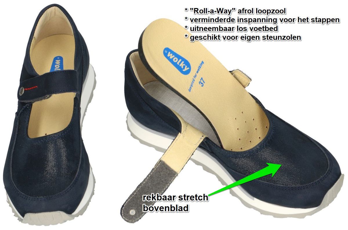 WOLKY artikel/model 0580511 E-Step stretch-antique nubuck col.870 blue summer is een marine of donker blauwe dameschoenen bandschoen sneaker of wandelschoen uit de EASY WALKING of e-walk groep van de lente/zomer 2020 collectie van de Duitse schoenenfabrikant en schoenenmerk WOLKY "designed for walking". De e-walk is van scratch ontwikkeld met de nieuwste technieken. Het doel: lopen makkelijker maken dan ooit. Het geheim zit 'm in het Roll-a-way system in de schoen met de zogenaamde afwikkelbalk die in de lichtgewicht EVA-zool geplaatst is en die ervoor zorgt dat de schoen tijdens het lopen automatisch wordt afgewikkeld. Het resultaat is dat lopen minder energie kost. Anatomisch uitneembaar voetbed/geschikt voor steunzolen. Geheel verstelbaar door de klittenbandsluiting. Ideaal voor lange afstanden wandelen. Voorblad is van zacht stretchleder dat zich aanpast aan de eigen voet. Wolky schoenen kan je kopen in onze schoenenwinkel regio Aalst, Ninove, Geraardsbergen, Zottegem of kan je online bestellen op onze webshop.