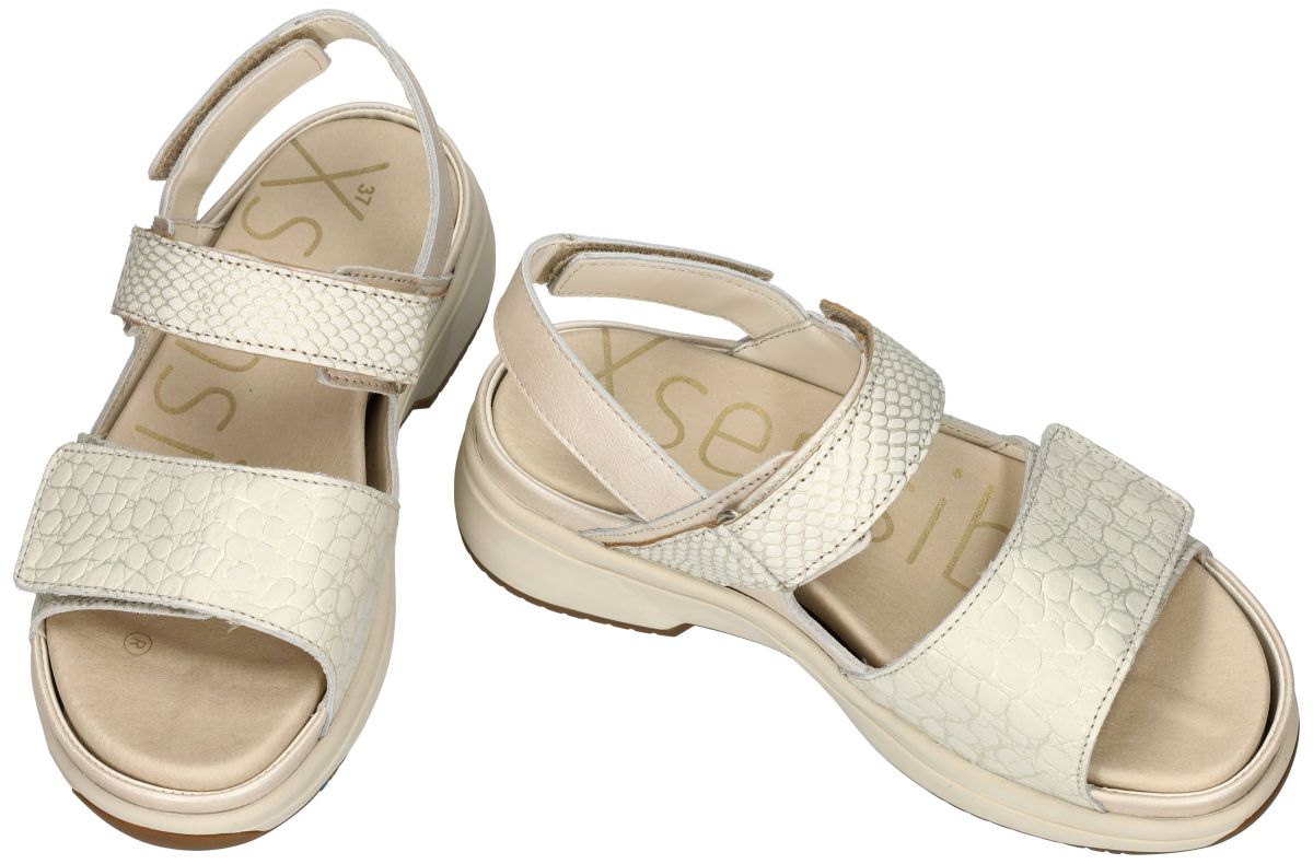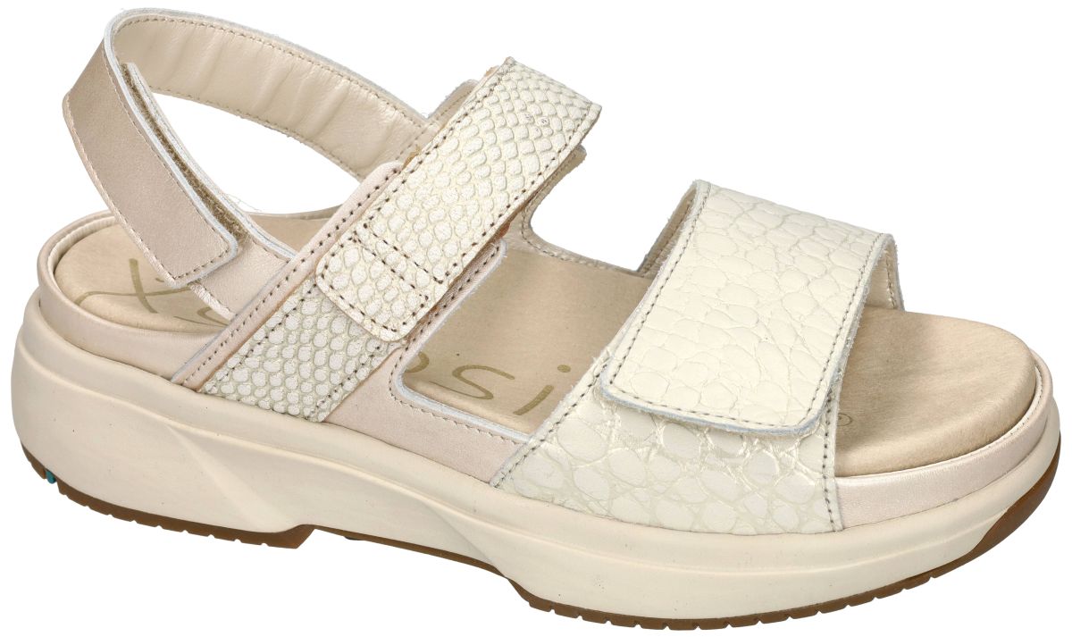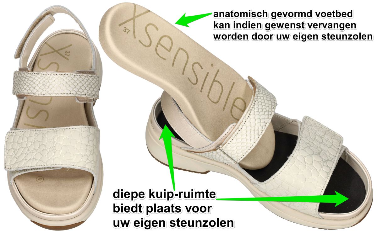 XSENSIBLE STRETCHWALKER artikel/model ARUBA 30700.5.176 G/H Soft Pearl Combi zijn parelmoer crème kleurige met python-print damesschoenen orthopedische gezondheids sandalen van het schoenenmerk xsensible stretchwalker. Kenmerkend voor de strechwalker Aruba sandalen zijn de verstelbare drie klittenbandsluitingen en de extra brede G tot H-wijdte leest voor brede en zware voeten en het uniek balanspunt in het midden van de zool. Dit balanspunt zorgt voor optimale balans en een evenwichtige, gezonde lichaamshouding. Het bovenwerk is vervaardigd uit het xsensible inside strechleder met zeer grote rekbaarheid. De verbazingwekkende elasticiteit zorgt voor maximale bewegingsvrijheid en optimaal comfort. Het anatomisch orthopedisch voetbed kan indien gewenst ook vervangen worden door eigen steunzolen. Deze trendy sandaal heeft een upper in crème parelmoer glanzen leder met subtiele reliëf print op een bijpassende beige dikke zool. Dankzij de drie brede, zachte leren bandjes met verborgen klittenbandsluiting kunnen de sandalen aan elke voet worden aangepast. Het dikke uitneembaar voetbed is orthopedisch anatomisch vormgegeven om de voeten correct te ondersteunen maar kan indien nodig ook vervangen worden door uw eigen steunzolen. De iets verhoogde zijkanten ondersteunen de voet en zorgen dat de sandaal altijd goed blijft zitten. De dikke witte loopzool met de unieke Xsensible balanstechnologie staat garant voor optimaal loopcomfort. Voor modebewuste vrouwen die stijlvol én comfortabel de zomer in willen. Xsensible strechwalker schoenen kan men kopen in onze schoenenwinkel regio Aalst, Ninove, Geraardsbergen, Zottegem, Liedekerke of kan men online bestellen op onze webshop.