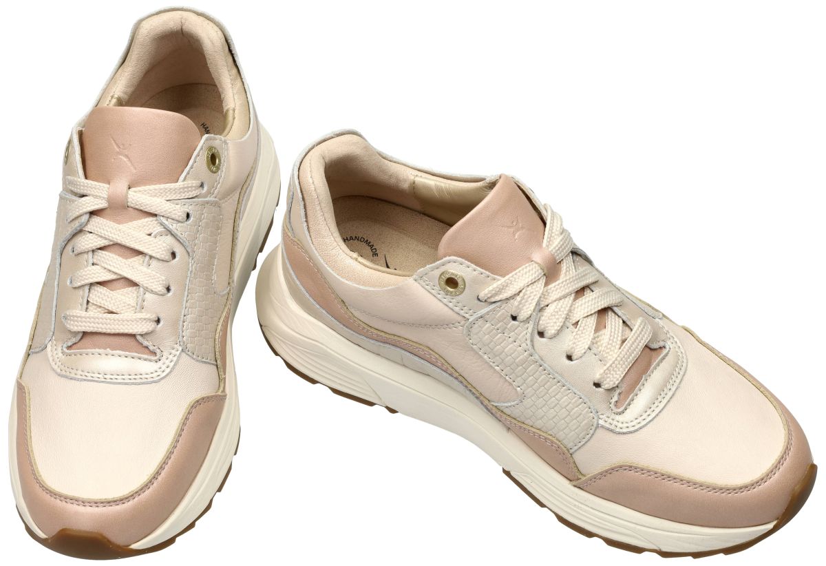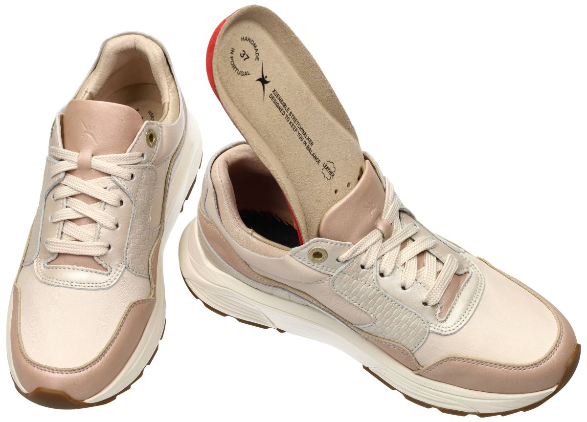 Xsensible Stretchwalker Golden Gate Lady – Soft Coral Combi Artikelnummer: 33000.3.753 GX | Next Generation collectie. Deze Xsensible Stretchwalker Golden Gate Lady uit de nieuwe lente/zomercollectie verenigt een verfijnd, vrouwelijk design met één van de meest geavanceerde comfortzolen op de markt. Dit model maakt deel uit van de Next Generation-serie, waarin Xsensible zijn befaamde Stretchwalker-technologie verder heeft geperfectioneerd op het vlak van schokabsorptie, stabiliteit en biomechanische ondersteuning. Unieke Stretchwalker-balanszool. Xsensible is wereldwijd gekend – en zeer vaak aangeraden door orthopedisten en podologen – om zijn uitgesproken stugge afrolzool. Deze zool is niet plooibaar en niet torsbaar, wat betekent dat de voet tijdens het stappen optimaal wordt geleid en ondersteund. Hierdoor wordt een correcte afwikkeling bevorderd en worden overbelasting van voet, enkel, knie en onderrug aanzienlijk beperkt. De geïntegreerde Stretchwalker-balanszool, geïnspireerd op het Japanse Ippon-principe, bevat een centraal balanspunt dat het lichaam automatisch in een meer natuurlijke, rechte houding brengt. Dit resulteert in een stabieler looppatroon en een merkbaar verlaagd vermoeidheidsgevoel. Superieure schokabsorptie : Een bijkomend onderscheidend kenmerk van de Golden Gate Lady is de uitstekende schokdemping van de zool. Elke stap wordt effectief geabsorbeerd, wat vooral een groot voordeel is bij langdurig staan of wandelen op harde ondergronden. Deze combinatie van stugheid én demping is precies waarom Xsensible-schoenen zo hoog aangeschreven staan binnen de orthopedische wereld. Zoals we van Xsensible gewend zijn, beschikt deze sneaker over een uitneembaar, anatomisch gevormd voetbed, waardoor hij perfect geschikt is voor eigen steunzolen. De GX-wijdte biedt comfortabel ruimte aan de voet zonder het model log te maken. Het gebruik van hoogwaardig soepel leer in combinatie met subtiele stretchzones laat de schoen zich mooi aanpassen aan de voet, ook bij gevoelige zones of lichte hallux valgus. De zachte polstering rond de hiel en tong verhoogt het draagcomfort en voorkomt drukpunten. De uitvoering in Soft Coral Combi valt op door haar zachte, harmonieuze kleurencombinatie van off-white, parelmoer, lichtgrijs en subtiel koraalroze. De gestructureerde zijpanelen geven de sneaker extra diepte en een luxueuze uitstraling. De sportieve off-white zool in combinatie met een warme rubberen loopzool zorgt niet alleen voor visuele balans, maar ook voor extra grip en stabiliteit. De Xsensible Stretchwalker Golden Gate Lady Soft Coral Combi is een absolute referentie binnen het segment van modieuze comfortsneakers. Dankzij de combinatie van orthopedisch verantwoorde zooltechnologie, uitzonderlijke schokdemping en een stijlvol design is dit een ideale schoen voor dames die hun voeten én lichaam elke dag het beste willen geven. Xsensible strechwalker schoenen kan men kopen in onze schoenenwinkel regio Aalst, Ninove, Geraardsbergen, Zottegem, Liedekerke of kan men online bestellen op onze webshop. Is uw maat net niet vooradig? contacteer ons en we trachten u alsnog te helpen.