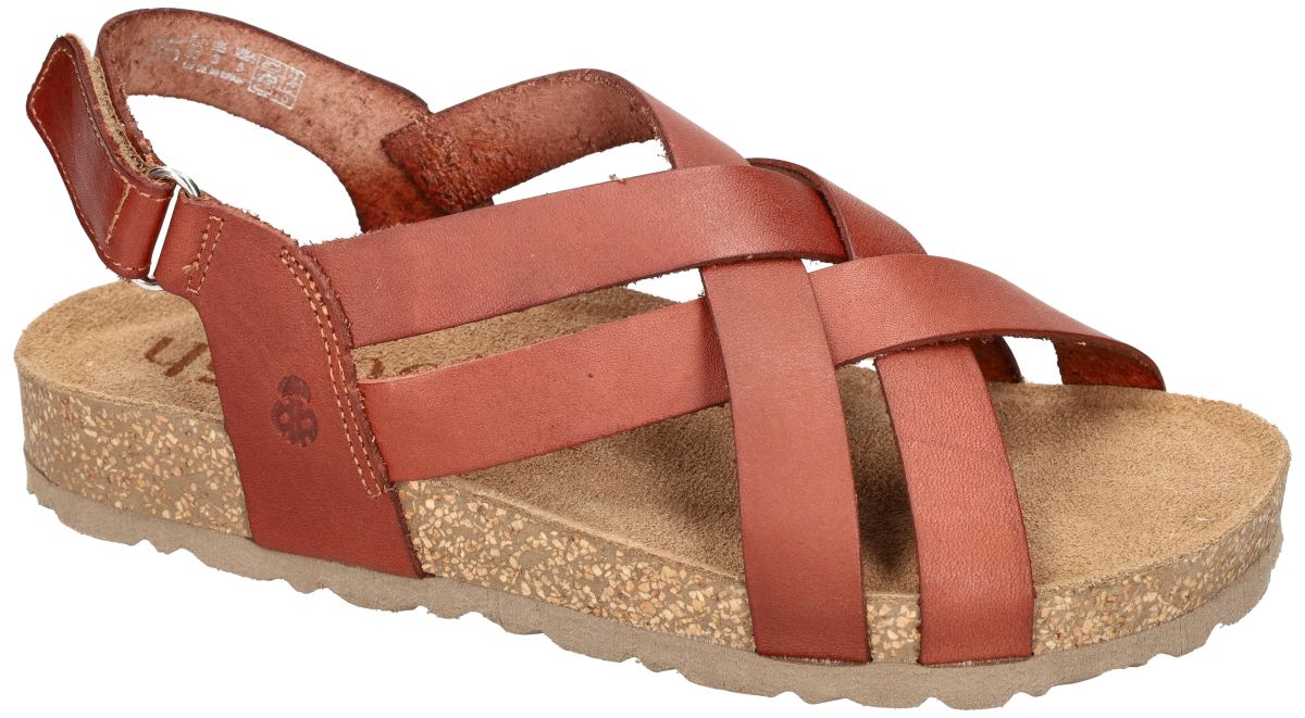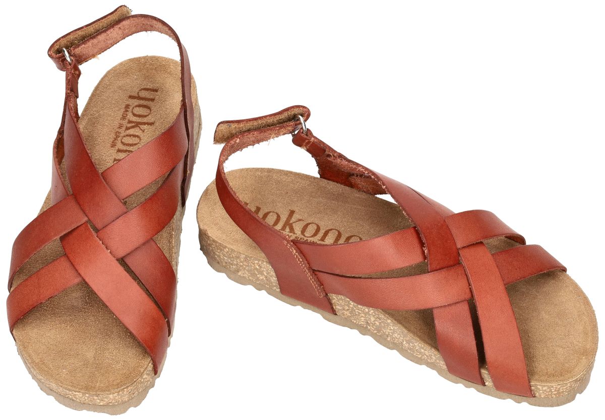 Kies voor natuurlijk comfort met deze bio-ecologische sandalen van Yokono, model JERBA-263 in de warme uitvoering vaquetilla nuez (cognac bruin). Deze sandaal is vervaardigd uit natuurlijke en duurzame grondstoffen zoals rubber, kurk en leder. Het leder is chroomvrij gelooid en vrij van synthetische kleurstoffen en lijmen: alle productieprocessen gebeuren op waterbasis, wat bijdraagt aan een milieuvriendelijke keuze. De brede, gekruiste lederen bandjes omsluiten de voet op een stabiele en stijlvolle manier, terwijl de verstelbare hielriem zorgt voor een goede pasvorm. Het anatomisch gevormde kurken voetbed biedt natuurlijke ondersteuning en volgt de contouren van uw voet. De lichte zool met kurkinleg zorgt voor schokdemping en een aangenaam loopgevoel. De rijke nootbruine tint geeft deze sandaal een tijdloze, zomerse uitstraling die moeiteloos combineert met elke outfit. Een ideale keuze voor wie comfort, kwaliteit en duurzaamheid wil verenigen. Yokono biologisch en ecologisch gefabriceerde schoenen, sandalen en slippers vindt u in onze schoenenwinkel regio Aalst, Ninove, Geraardsbergen, Zottegem, Liedekerke of kan u online bestellen op onze webshop.