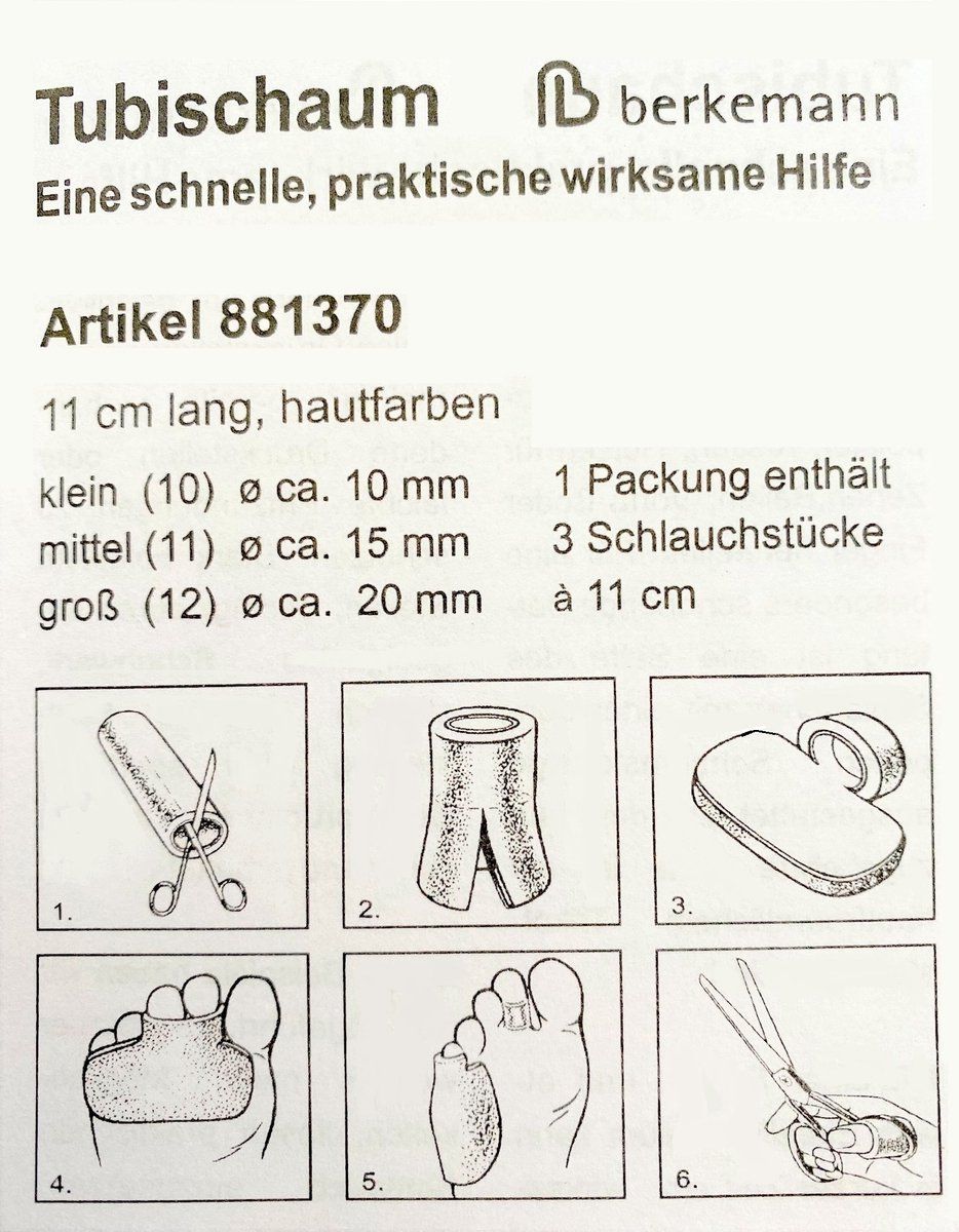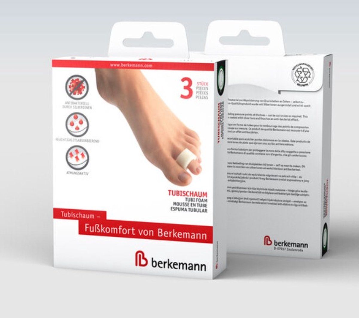 Berkemann Tubischaum / Mousse en tube – Comfortabele teenbescherming bij druk- en wrijvingsklachten. De Berkemann Tubischaum is een zachte, huidkleurige schuimtube die zorgt voor onmiddellijke verlichting bij pijnlijke drukpunten, eeltvorming, likdoorns en wrijving tussen de tenen. Deze praktische en hygiënische oplossing biedt effectieve bescherming en is eenvoudig op maat te knippen voor elke teen of vinger. Toepassing: De Tubischaum wordt vooral gebruikt bij: Drukplekken tussen of op de tenen, likdoorns, blaren of eeltvorming. Wrijving door te nauwe schoenen. Gevoelige tenen of klauwtenen. Preventie van wondjes bij diabetische voeten. Eigenschappen en voordelen: Individueel op maat te knippen – eenvoudig aan te passen aan elke teenlengte. Zacht, veerkrachtig schuim – dempt druk en vermindert wrijving. Ademend en vochtabsorberend materiaal – zorgt voor een aangenaam voetklimaat. Hygiënisch en huidvriendelijk – de binnenzijde is bekleed met een dunne polymeerlaag, wat de tube antibacterieel en duurzaam maakt. Direct merkbare drukverlichting – ideaal bij gevoelige, geïrriteerde of pijnlijke tenen. Veelzijdig gebruik – geschikt voor zowel tenen als vingers. Kenmerken: Lengte: ca. 11 cm (op maat te knippen). Kleur: huidkleurig. Verkrijgbaar in 3 diameters: Smal (ø ca. 10 mm), Medium (ø ca. 15 mm), Large (ø ca. 20 mm). Verpakking: 3 schuimstukken van elk 11 cm . Gebruik: Knip de gewenste lengte af, schuif de tube over de aangedane teen en ervaar onmiddellijke verlichting. Voor optimaal comfort kan de tube aan één zijde licht ingesneden worden, zoals aangegeven in de handleiding. De Berkemann Tubischaum is een betrouwbare, snelle en praktische hulp voor iedereen die last heeft van druk of wrijving aan de tenen. Perfect geschikt voor dagelijks gebruik, ook in nauwe of gesloten schoenen. Verkrijgbaar bij Karo schoenen&lederwaren of online op onze webshop.