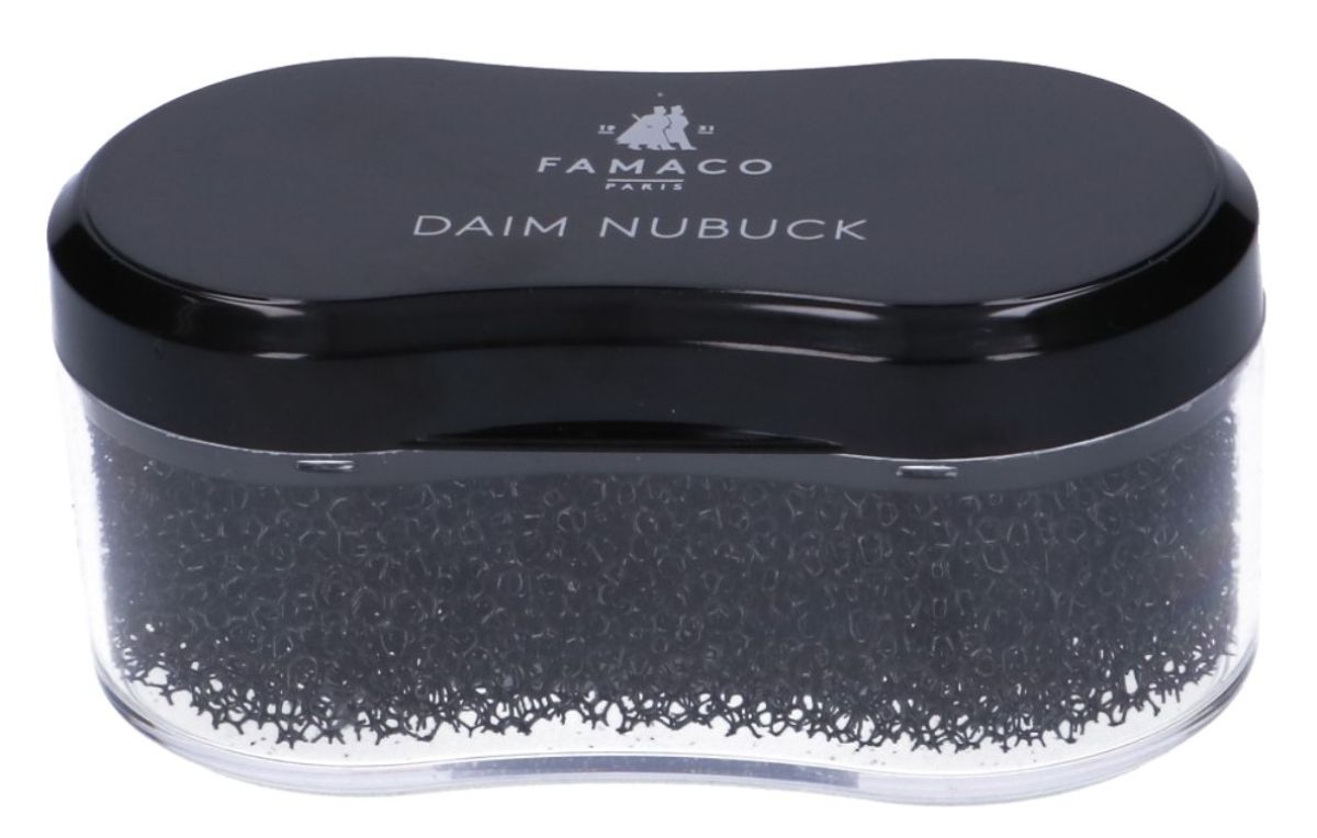 De DAIM NUBUCK is een schuur-spons of borstel van het onderhouds producten merk FAMACO paris.Met deze nubuk spons onderhoud u suède en nubuck en daim en geeft u dit leder terugeen mooie uitstraling. Voor schoenen, tassen en kleding. Ideaal voor onderweg. Licht opruwen met de borstel.